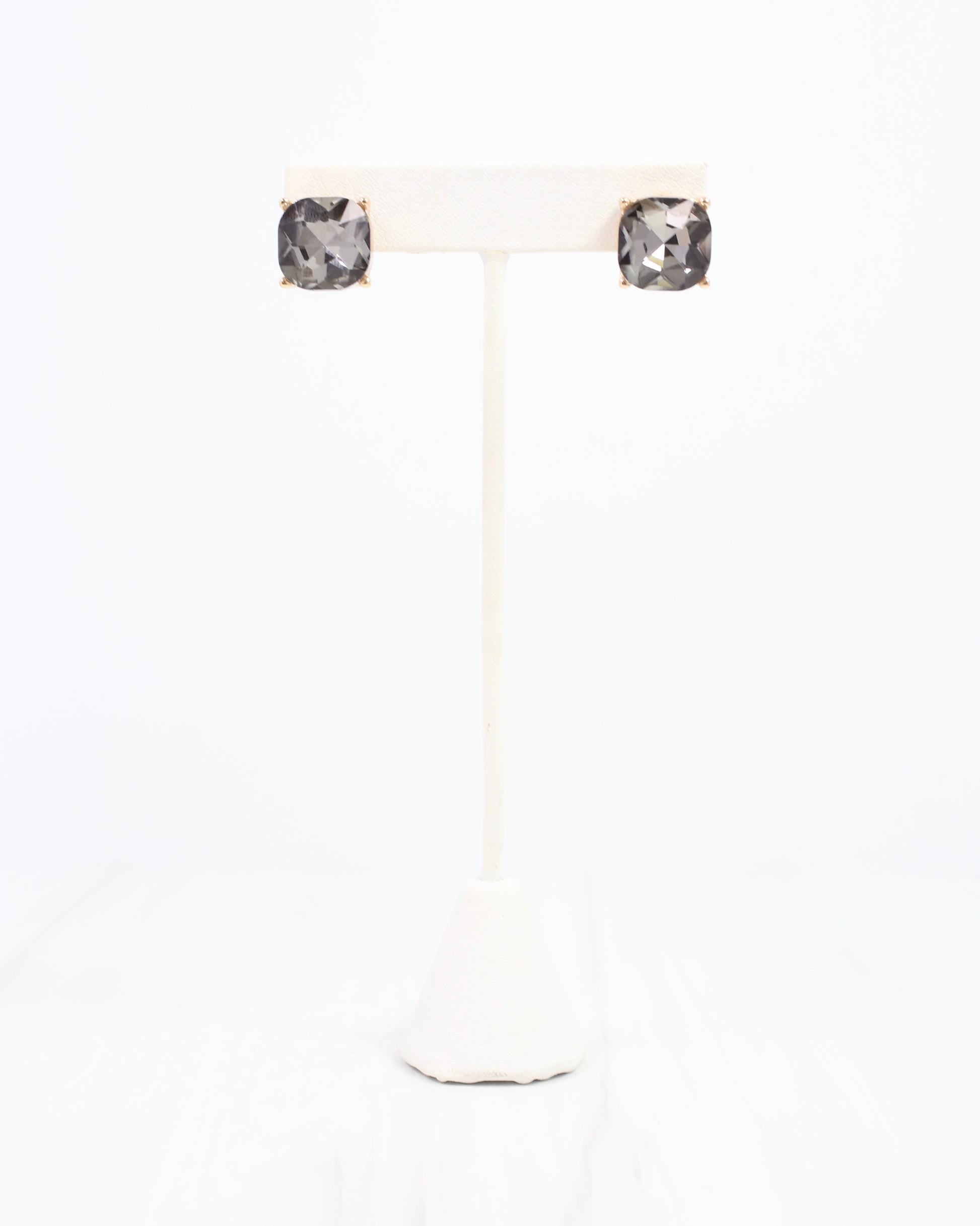 Elevate your style with these Julien Stone Stud Earrings in black diamond sparkle. Their versatile design complements everything from casual jeans to elegant black-tie attire, making them a chic addition to any outfit. Add a touch of refined shimmer to enhance your look effortlessly.