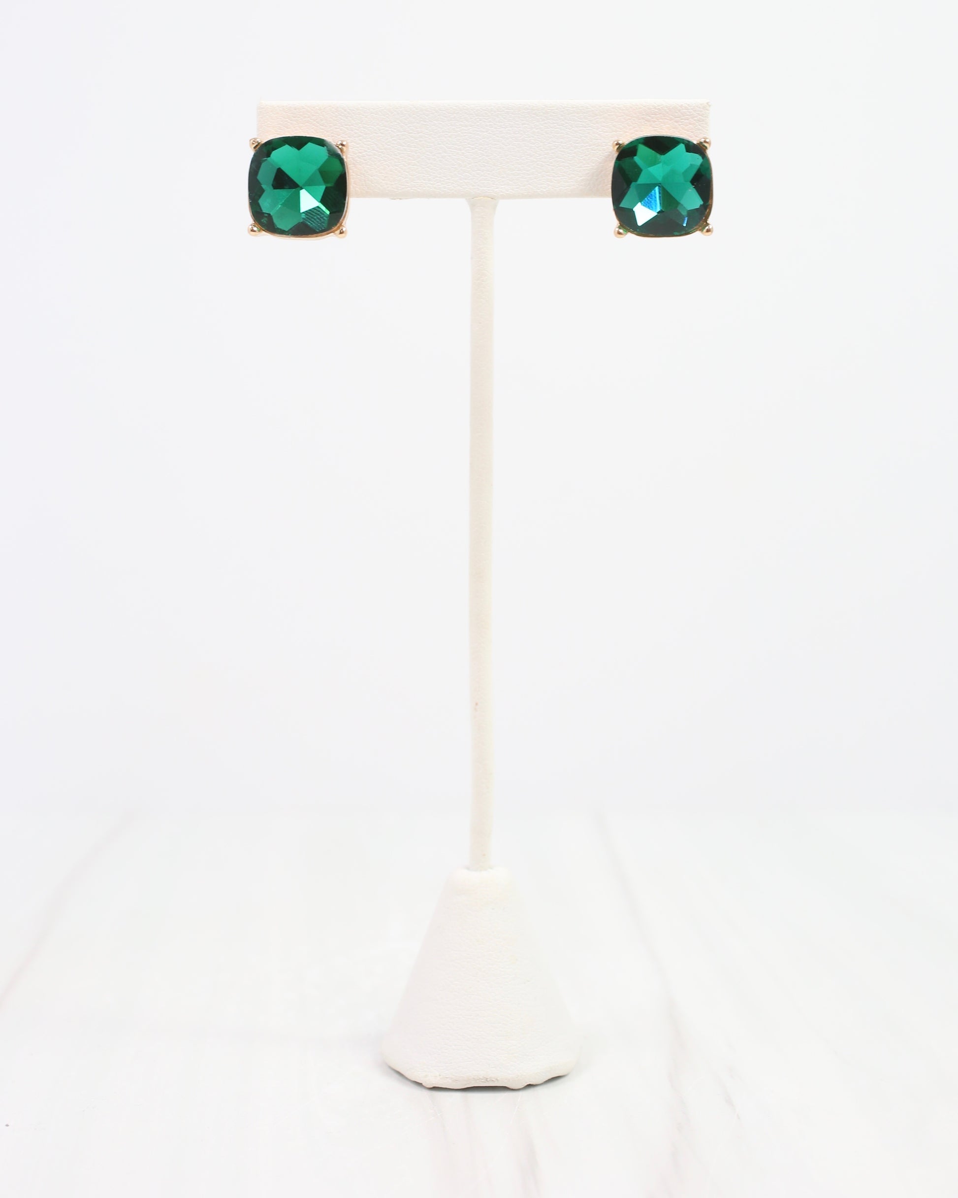 Elevate your style with these Julien Stone Stud Earrings in green sparkle. Their versatile design complements everything from casual jeans to elegant black-tie attire, making them a chic addition to any outfit. Add a touch of refined shimmer to enhance your look effortlessly.
