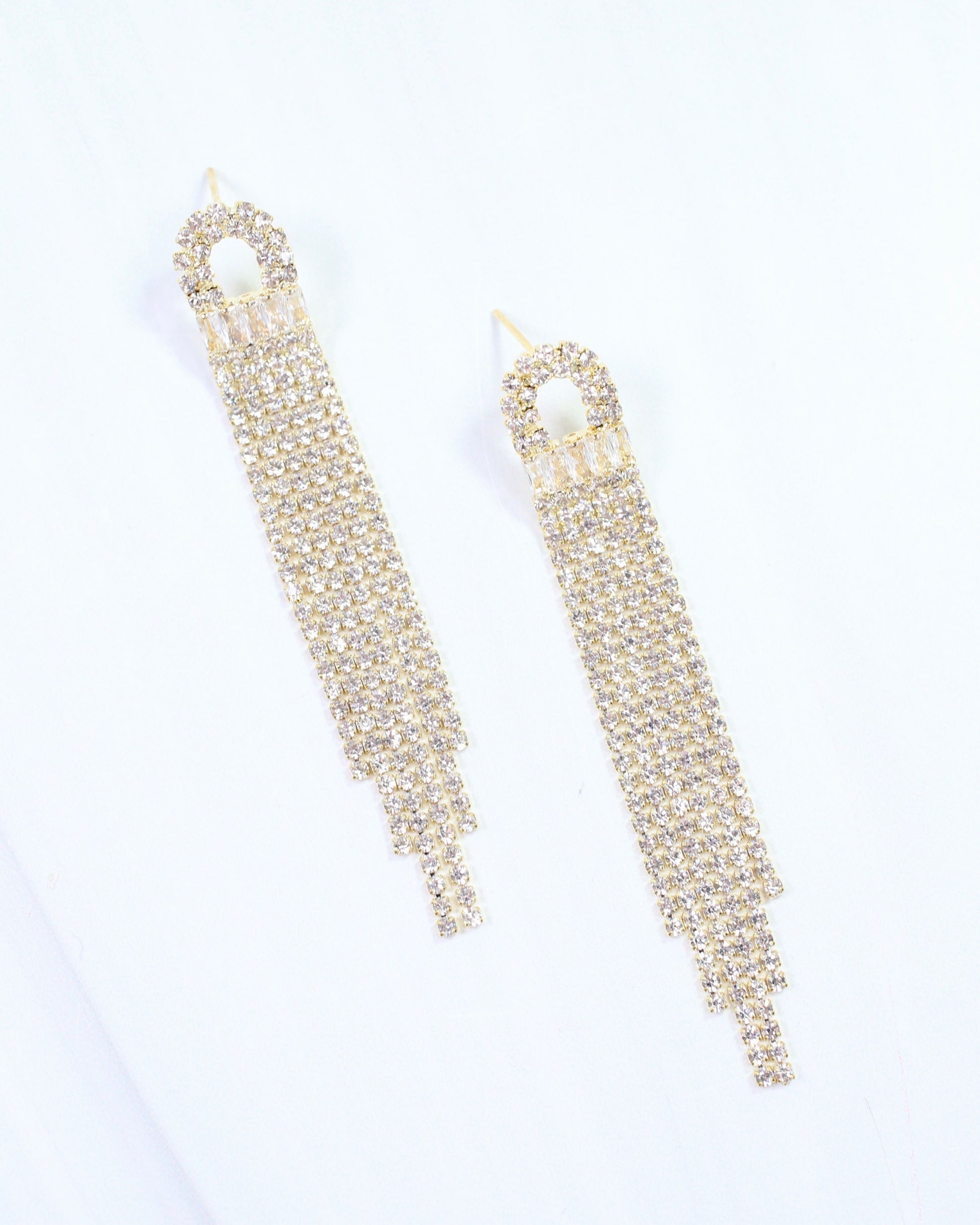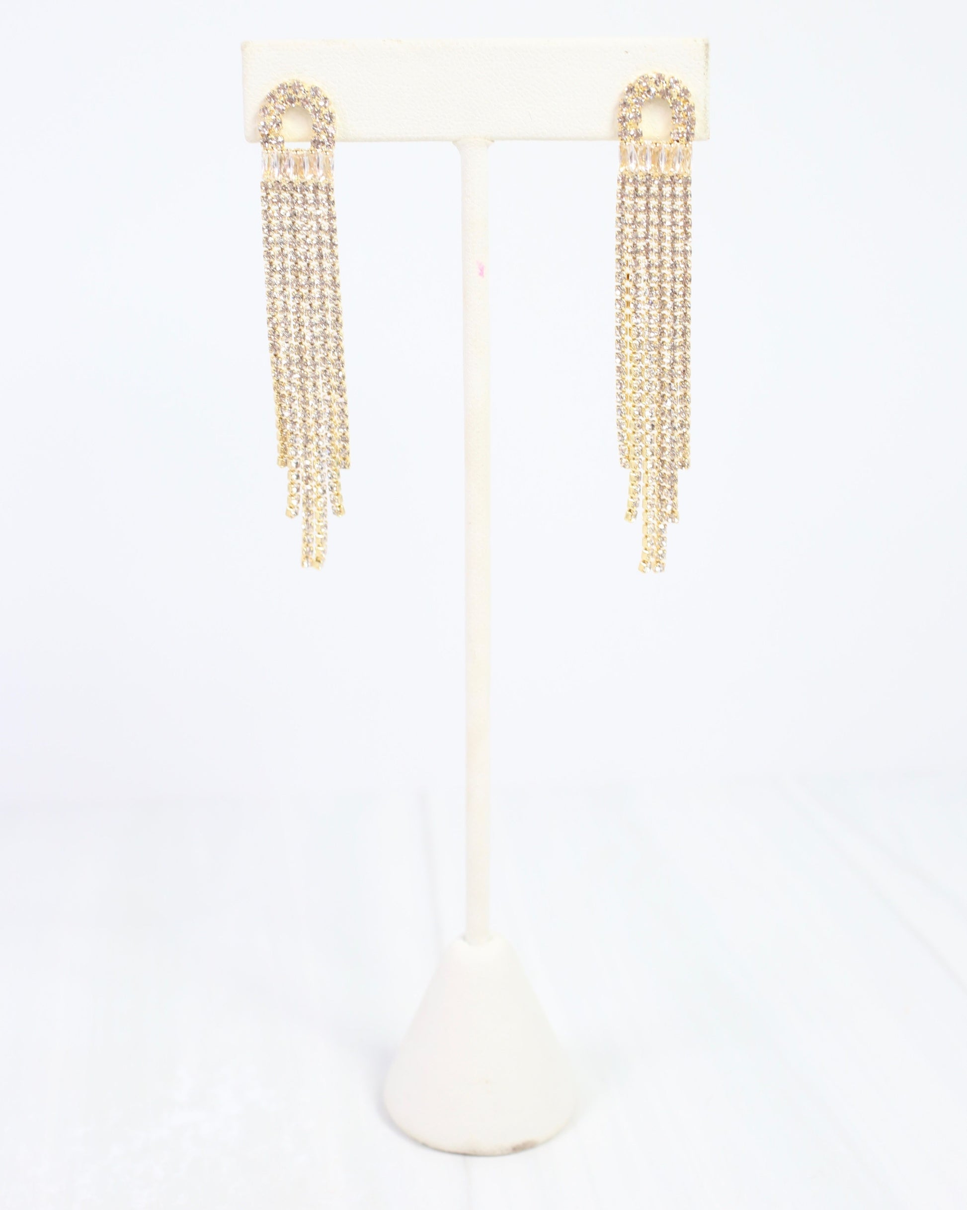 Elevate your style with the Kathrina Crystal Chandelier Post Earring in Gold. These elegant gold earrings feature dazzling CZ fringe drops that catch the light beautifully, making them ideal for social occasions. Their sophisticated design adds a glamorous touch to any outfit, perfect for turning heads at your next event.