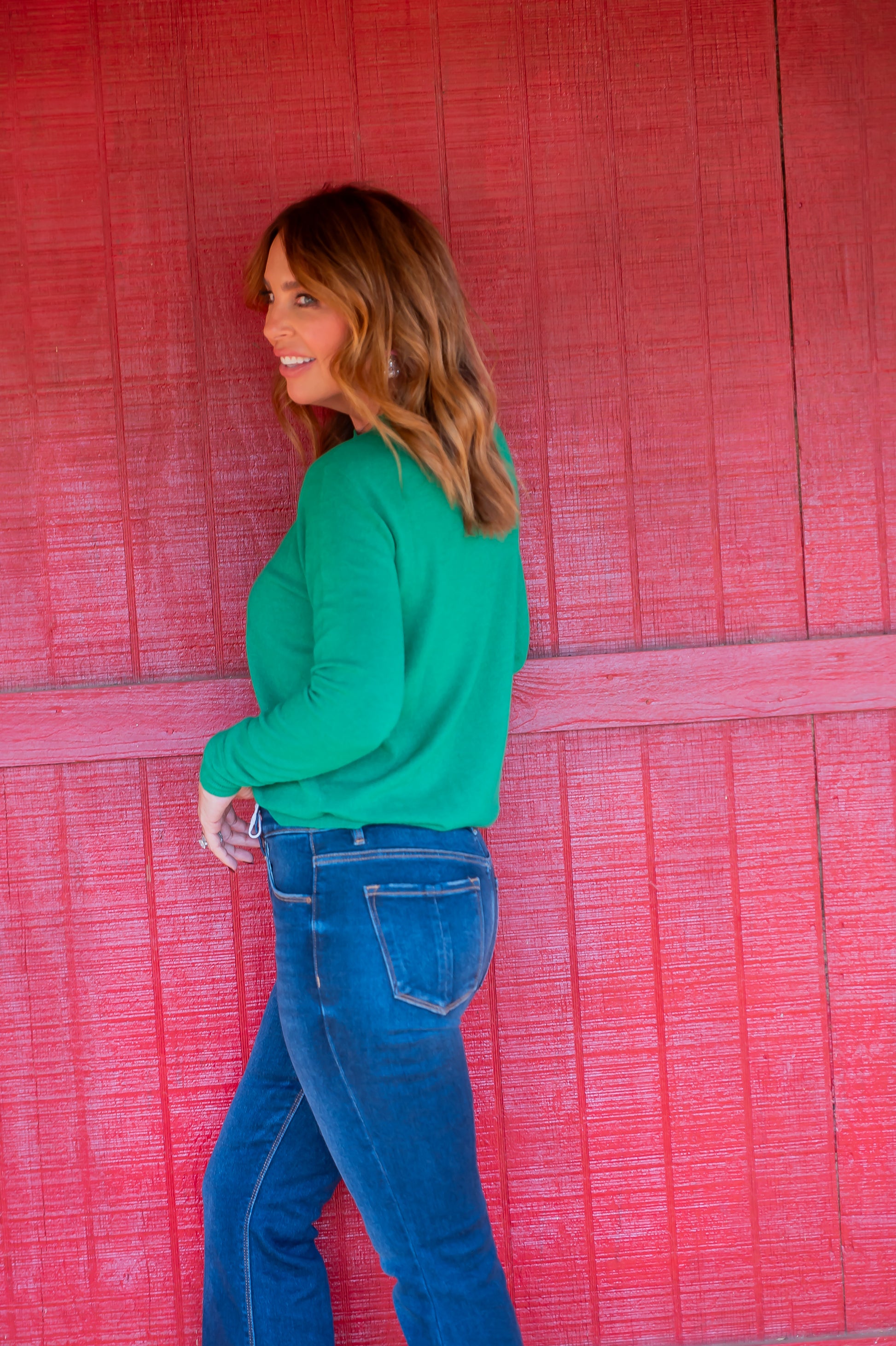 Elevate your everyday style with the Kenmore Crew Neck Sweater in bold, beautiful green. Featuring a classic crew neckline and a soft, cozy knit, this sweater delivers timeless charm with a relaxed fit that moves with you. The clean silhouette is perfectly balanced by ribbed hem and cuffs, adding just the right touch of structure to keep your look effortlessly cool and comfortable.