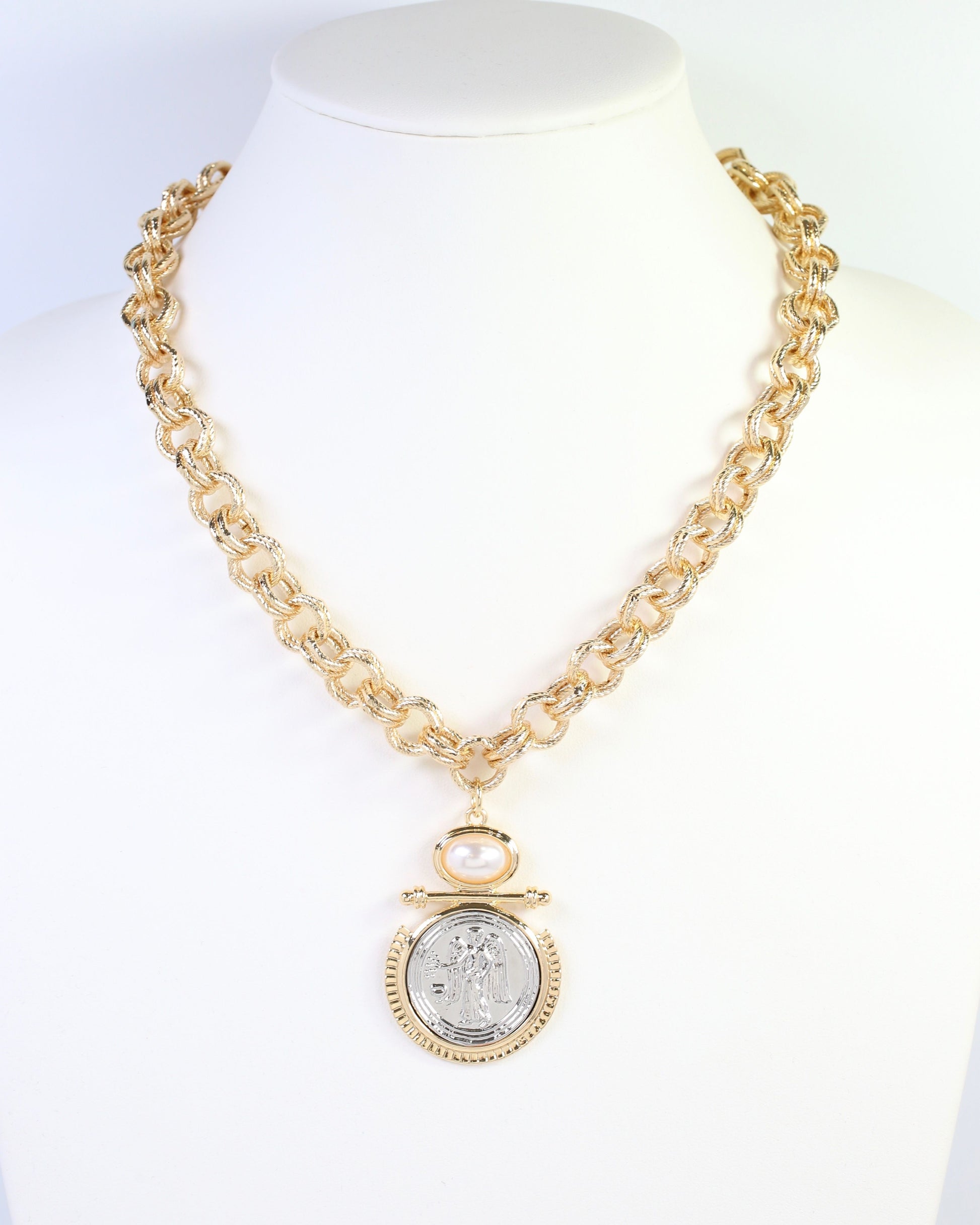 Kirksville Coin Pendant Link Necklace Gold
