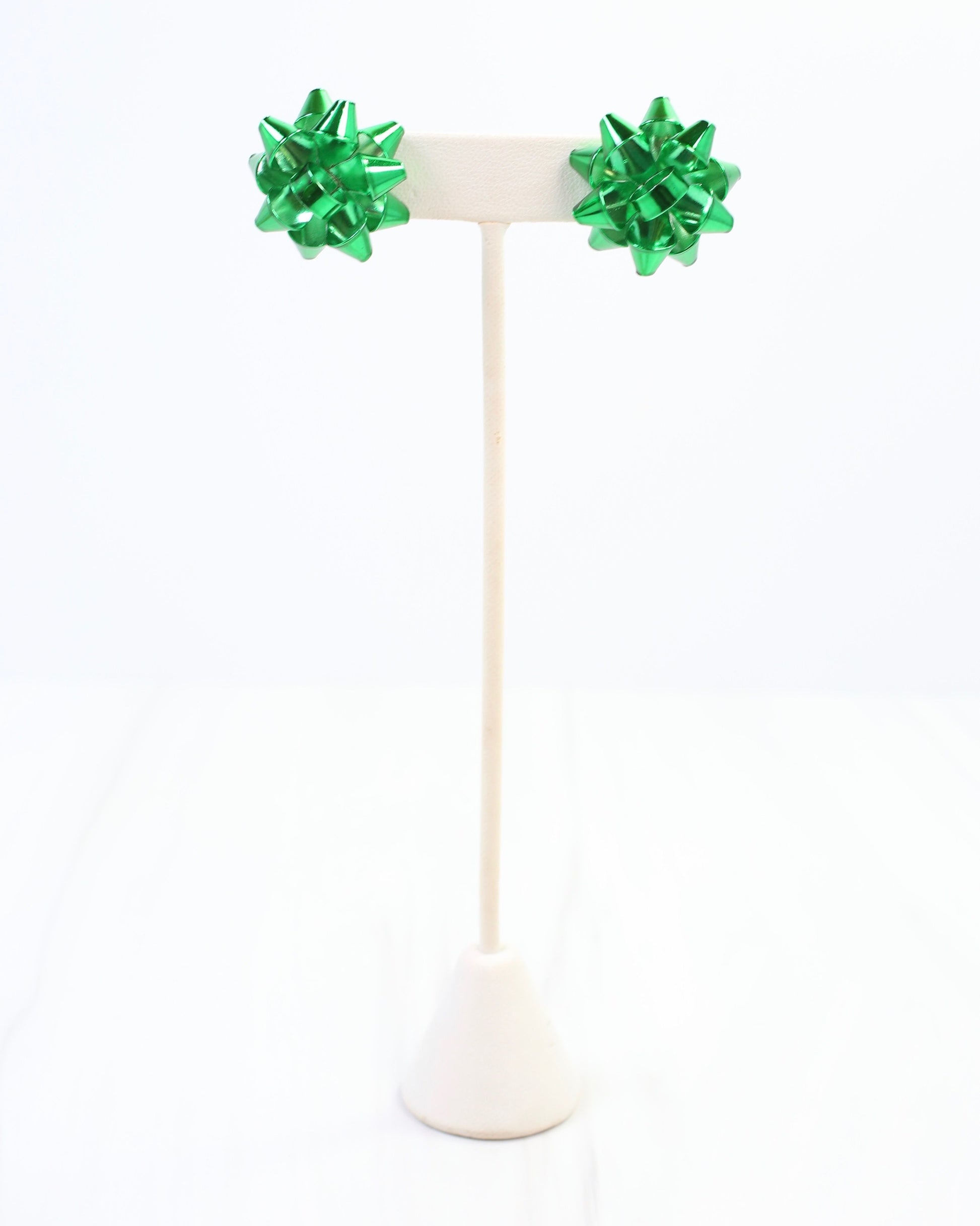 Elevate your holiday style with the Let's Wrap Large Bow Stud Earrings in stunning green. These statement earrings feature metal-crafted gift bows that capture festive cheer and add a playful yet chic touch to any outfit. Perfect for gifting or making your own seasonal look unforgettable.