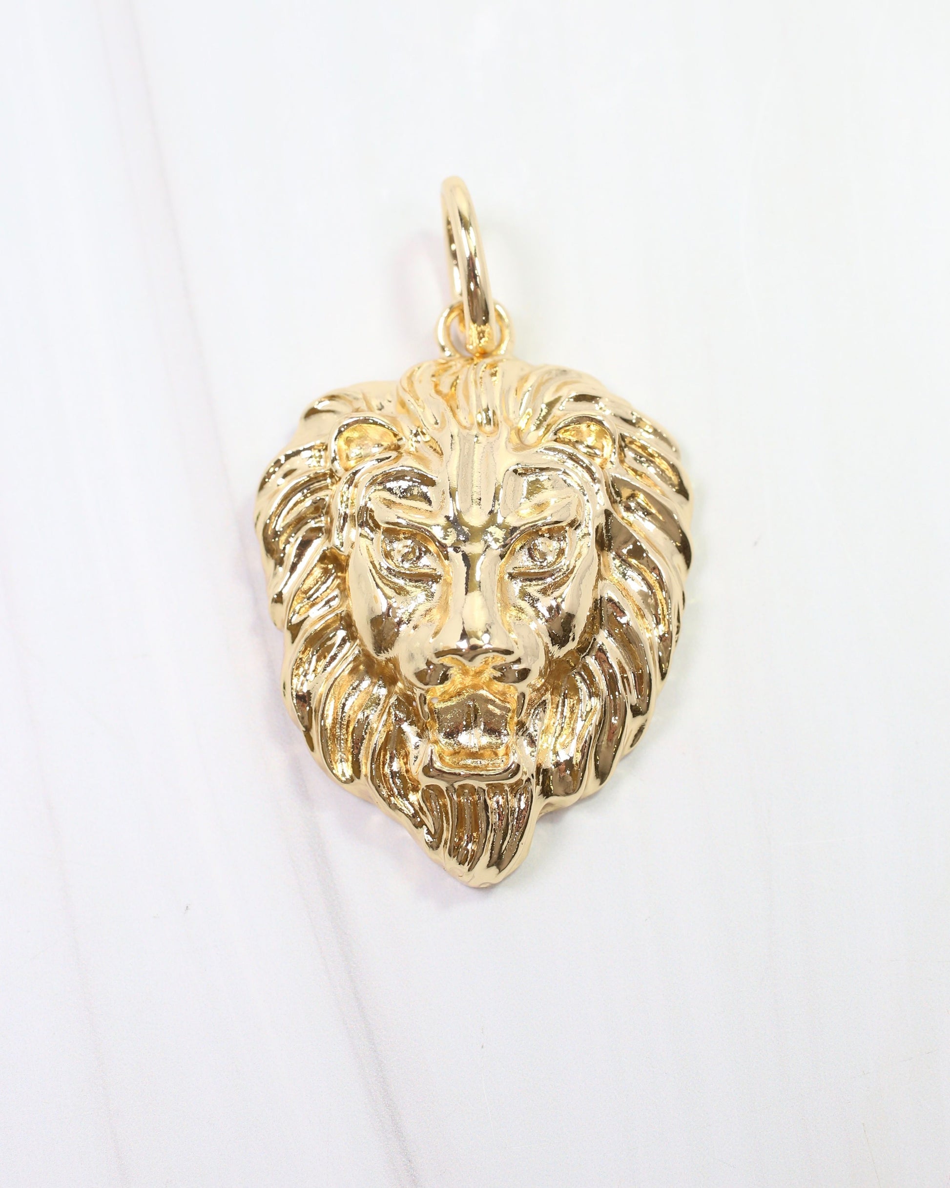 Make a bold statement with the Livingstone Lion Charm Gold. This large lion head charm features an open mouth design, adding a fierce and fashionable touch to your accessories. Perfect for layering on necklaces or enhancing scarf necklaces with fun, eye-catching detail.