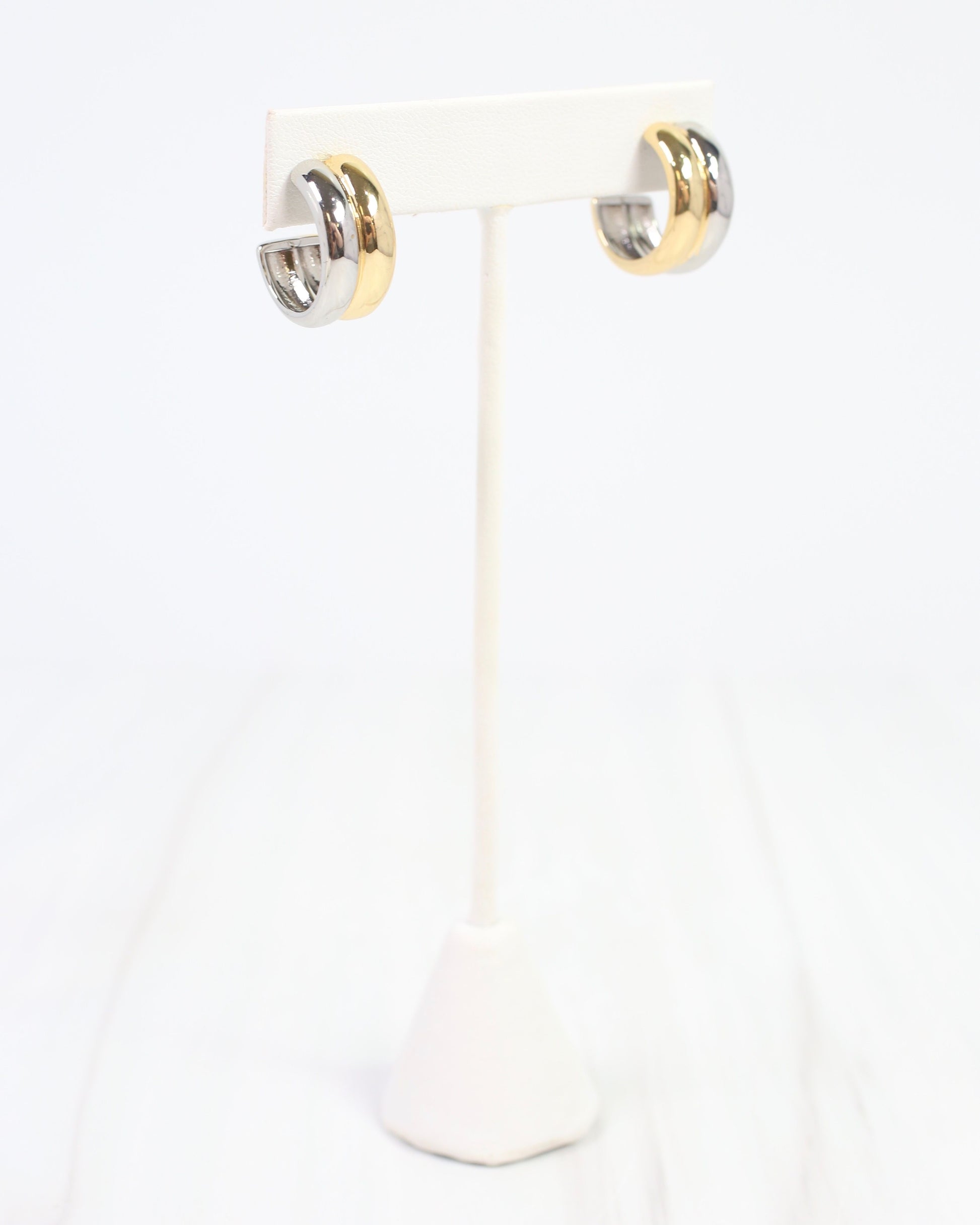 These Mason Hoop Earrings combine gold and silver tones in a chic double-lined design, offering versatile elegance that complements any outfit. Perfect for daily wear, their two-tone finish adds a modern touch to your accessory collection.