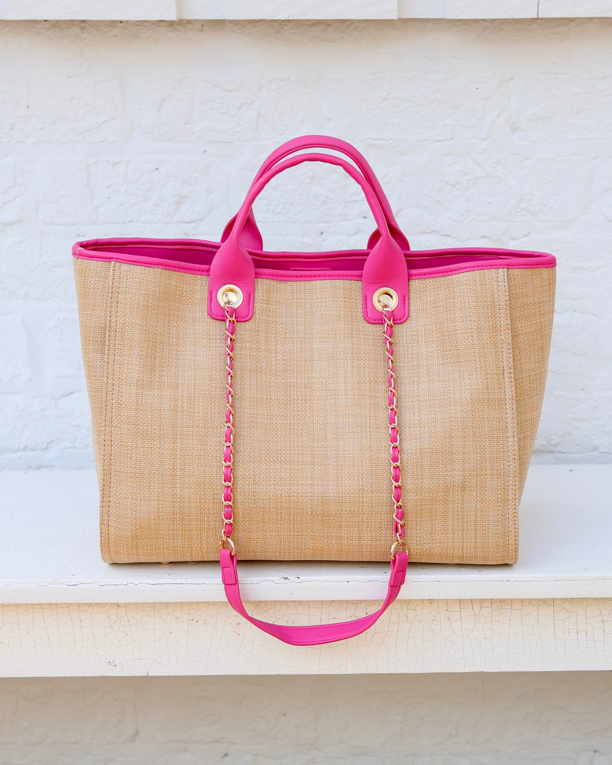 This adorable straw tote is a perfect on the go bag! Missy is designed after Melissa, one of our best sellers! The Missy is smaller and lighter to carry! It has two short top handles as well as two elongated braided handles to carry on your shoulder. The Caroline Hill logo is centered at the top of the bag on one side. It has a magnetic closure and a zipper pocket and 2 open pockets inside. This bag is a great addition to any Spring wardrobe!