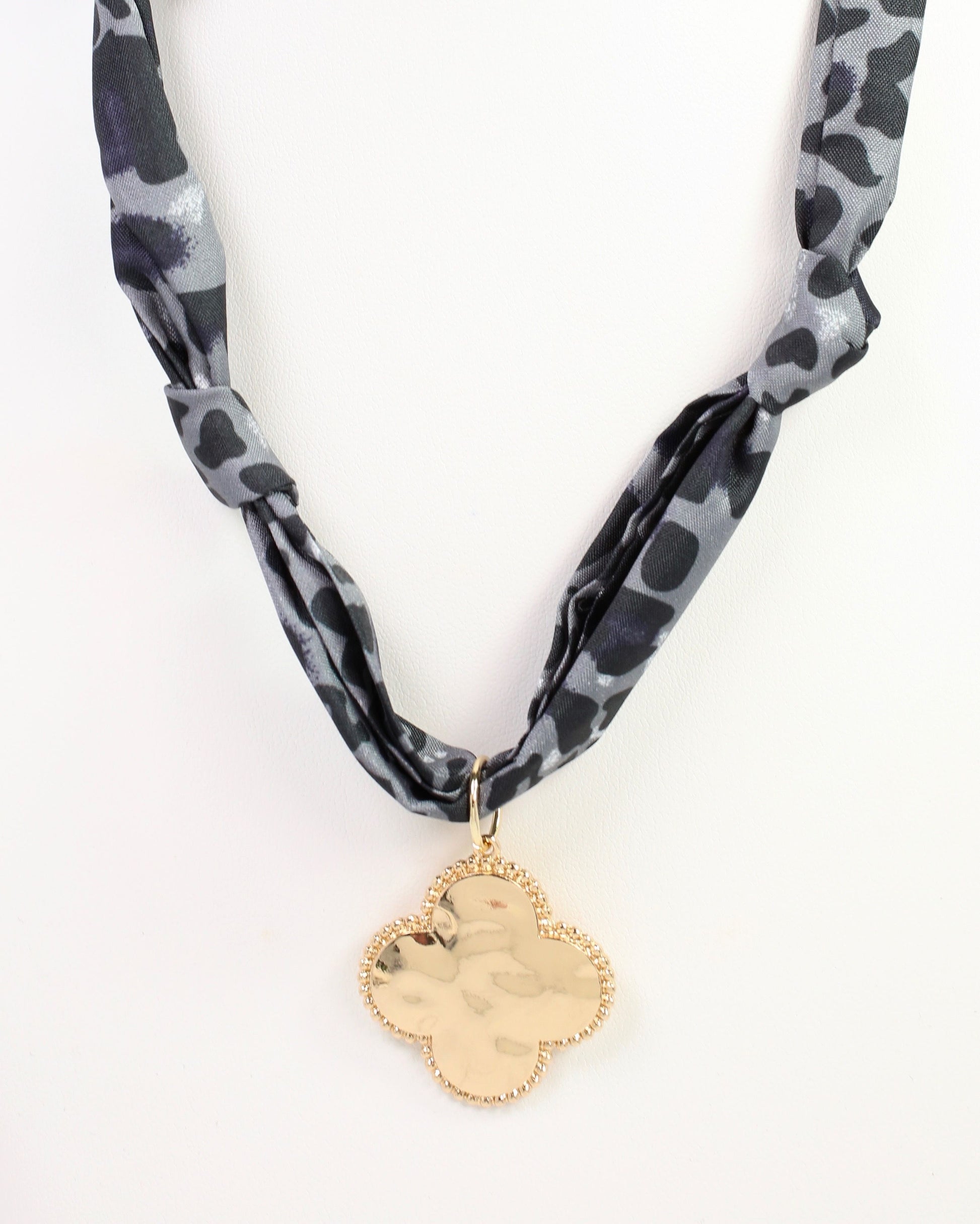 Moline Clover Charm Scarf Necklace Gray Leopard