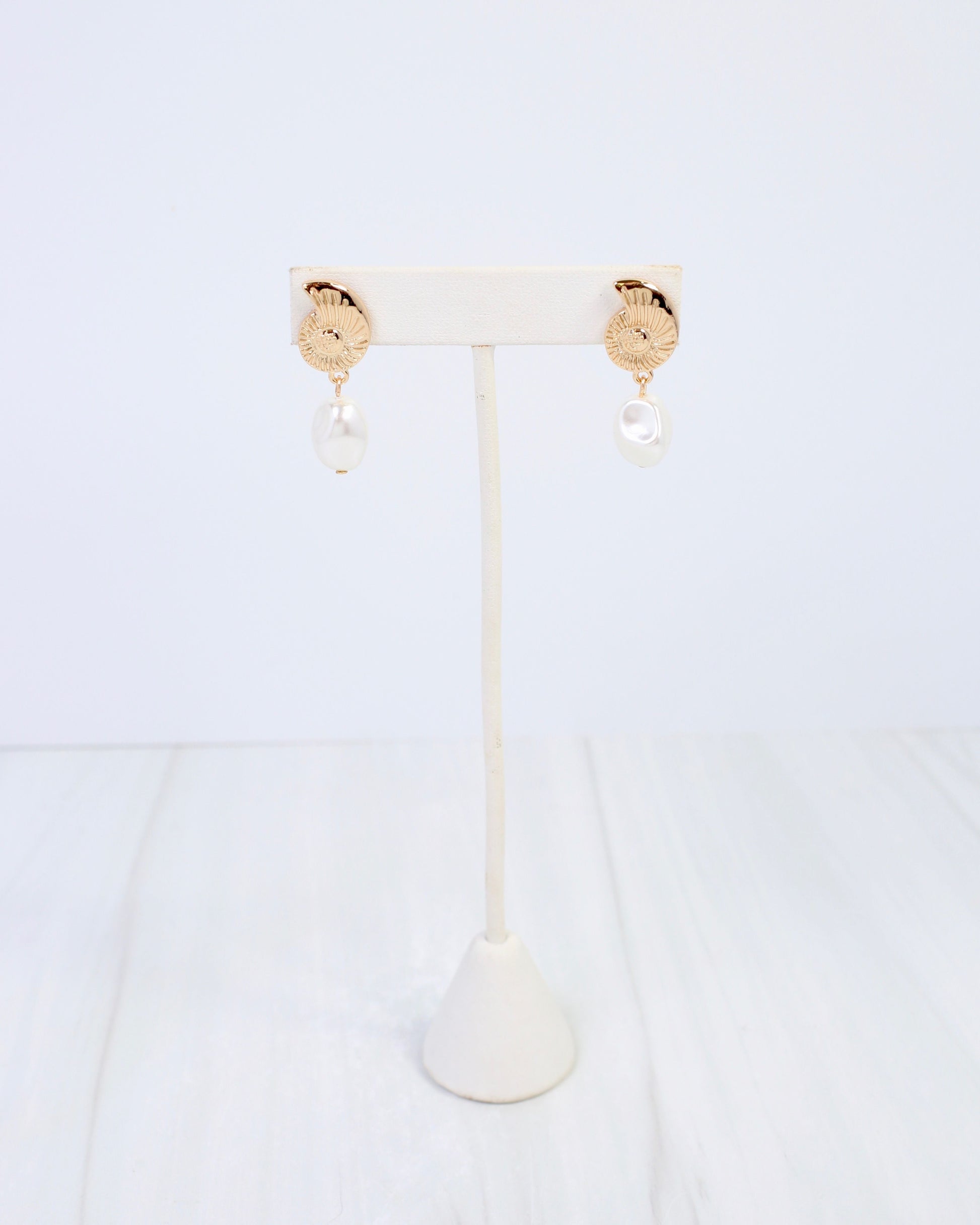 Discover understated elegance with the Oswego Shell Pearl Drop Earrings in gold. Featuring natural shell and pearl elements, these earrings offer a refined coastal aesthetic that complements any wardrobe. The graceful drop design and warm gold tone create a timeless piece perfect for both everyday wear and special occasions.