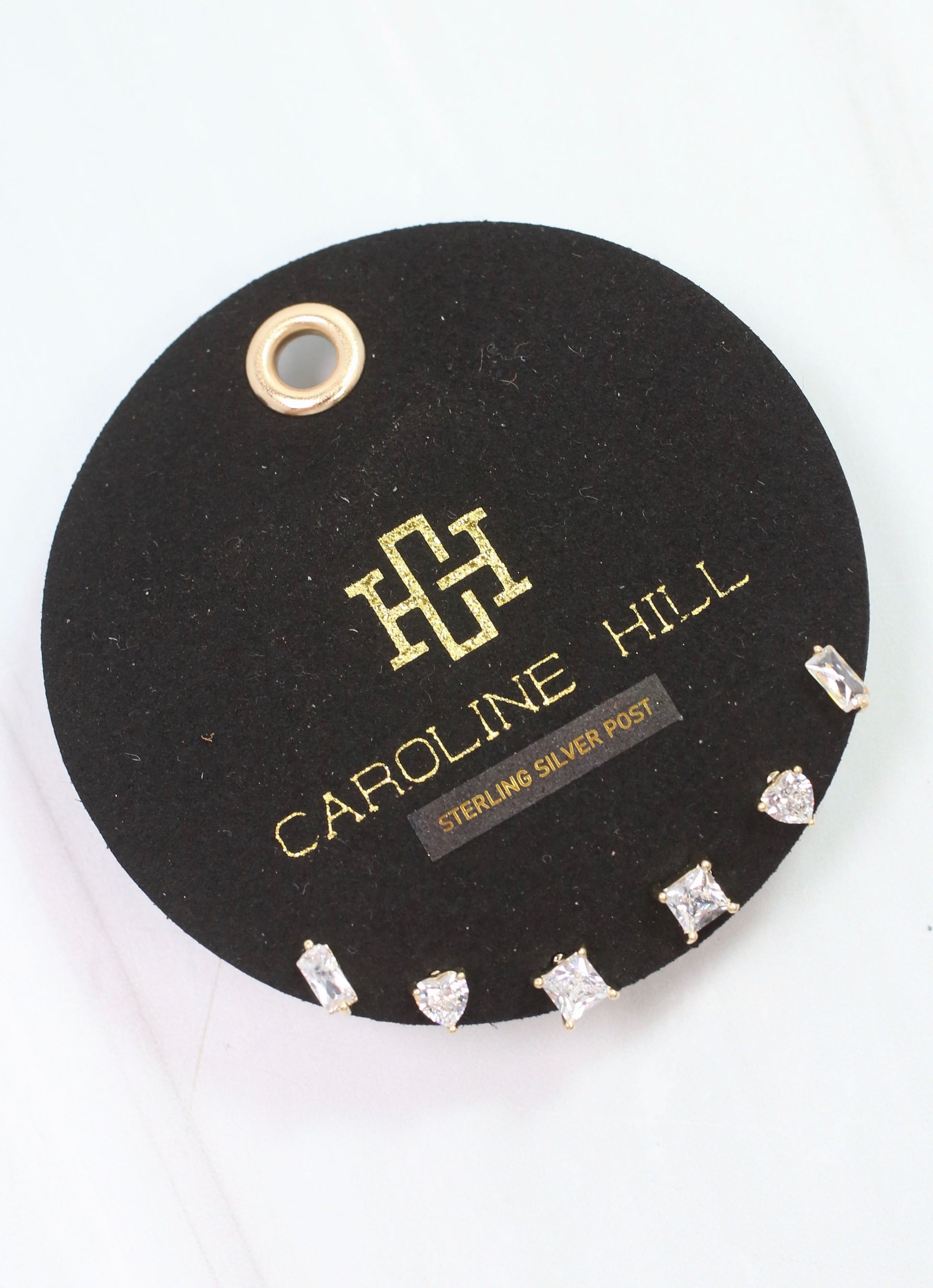 This beautiful earring set includes three CZ stud options each with their own unique shape. They are timeless accessories to wear elegantly or casually.