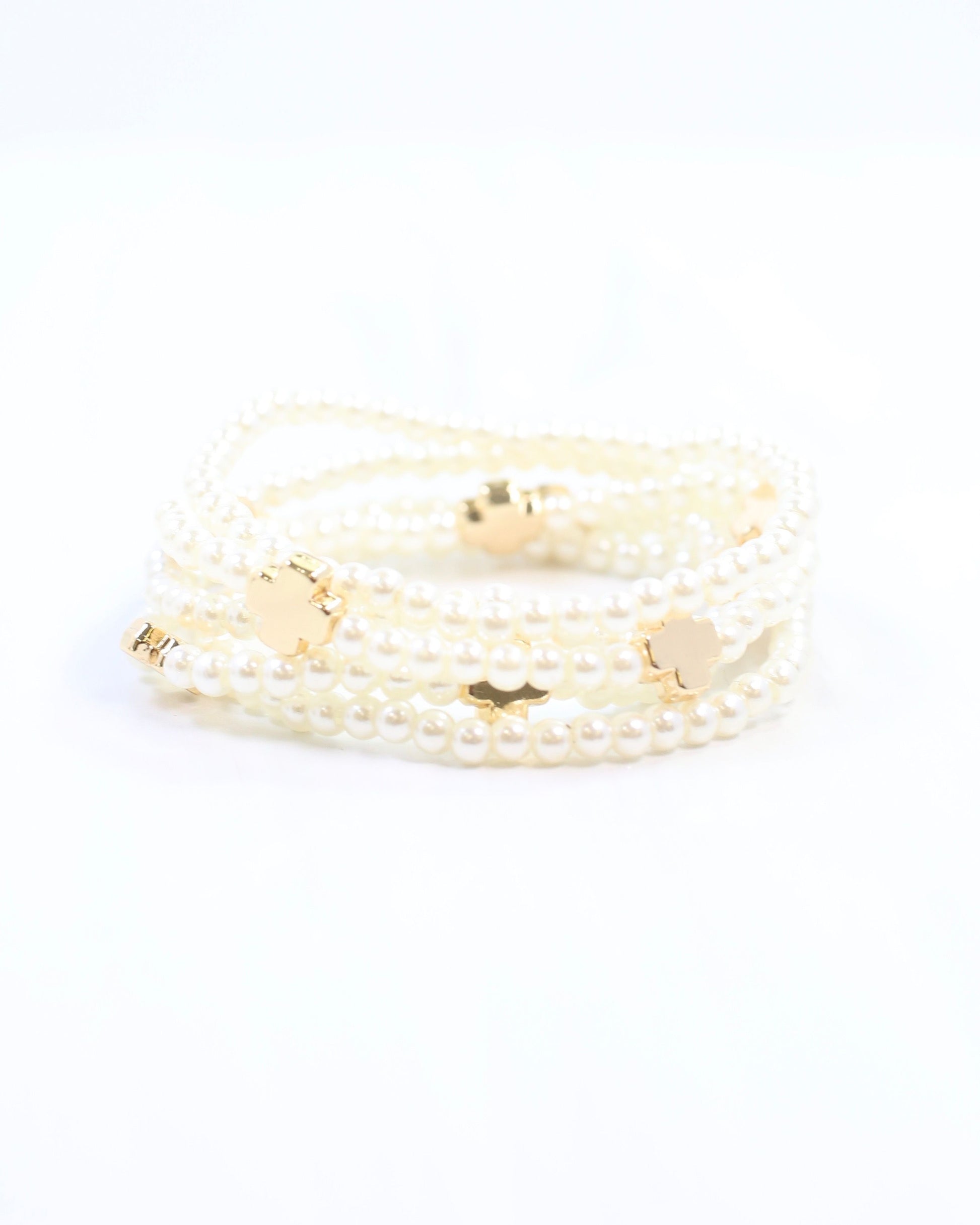 Pauline Pearl and Cross Stretch Bracelet Set Pearl