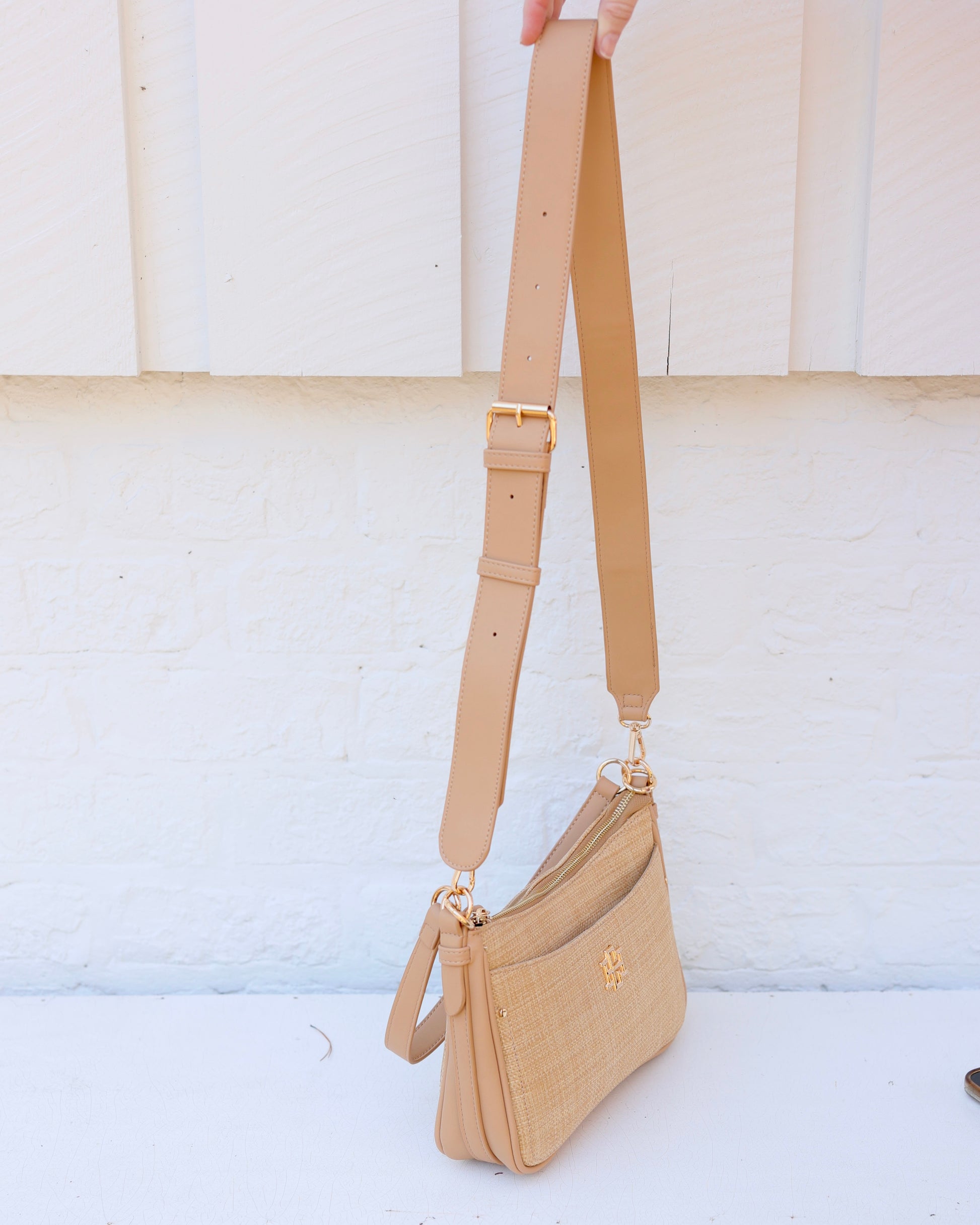 This stylish woven straw handbag offers a structured silhouette that complements any outfit. Designed for convenience, it features large magnetic pockets on each side, perfect for keeping your phone secure and accessible. The top zipper opens to a spacious interior with two open pockets and a zippered compartment, ideal for organizing essentials. With two removable straps—a shorter shoulder strap and an adjustable nylon crossbody strap—this bag adapts effortlessly to your lifestyle. Compact yet functional!
