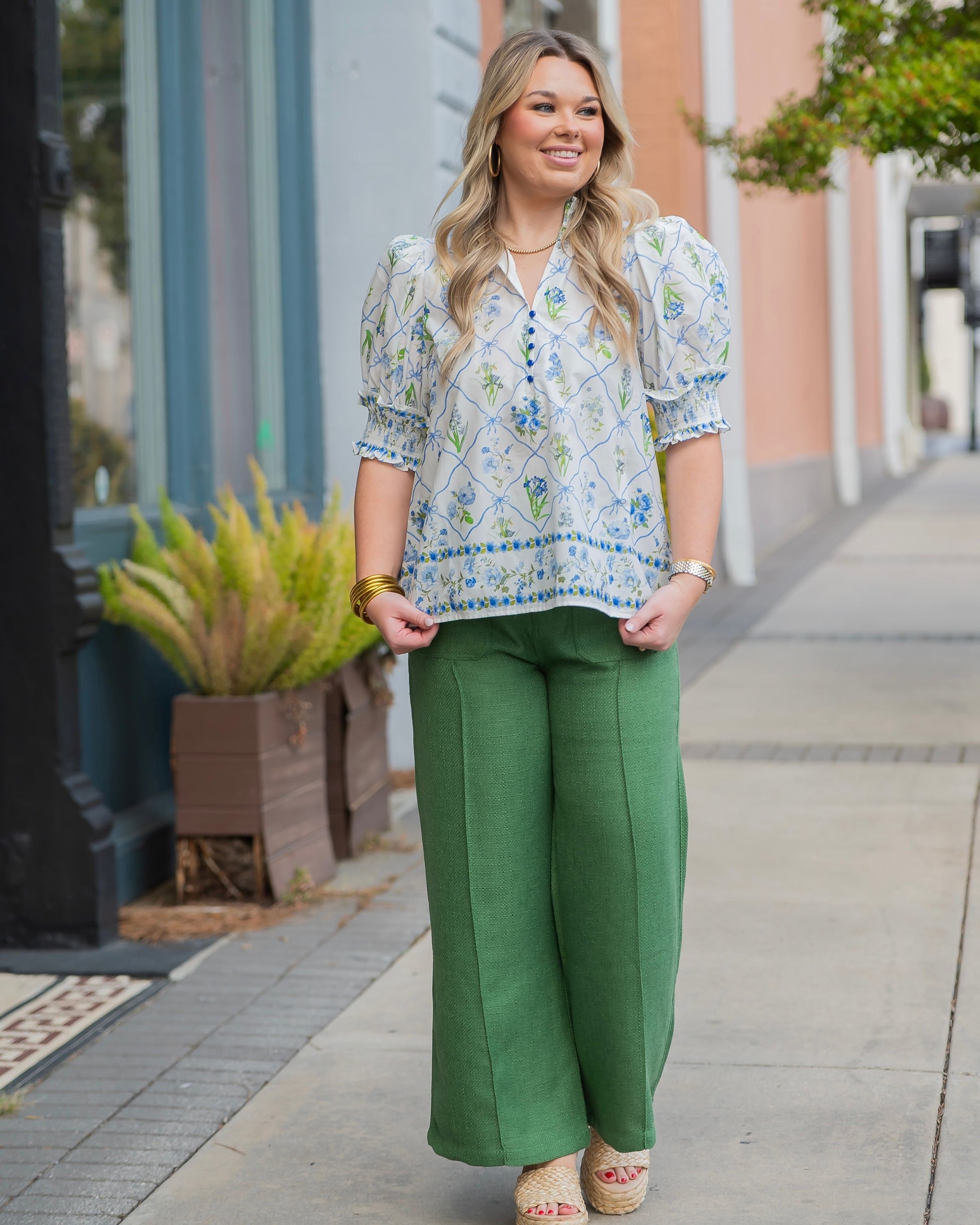Seattle Botanical Print Puff Sleeve Top