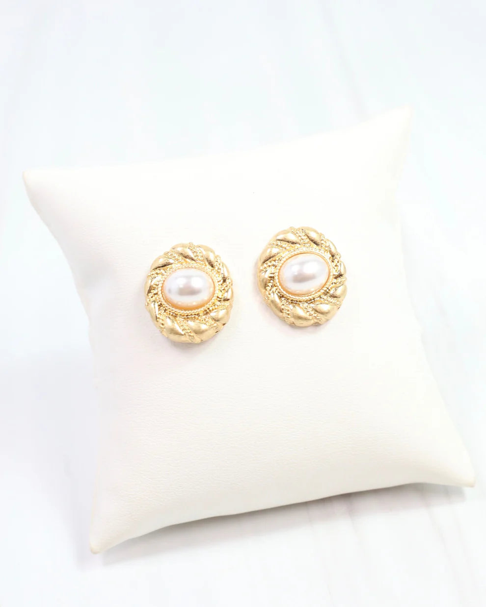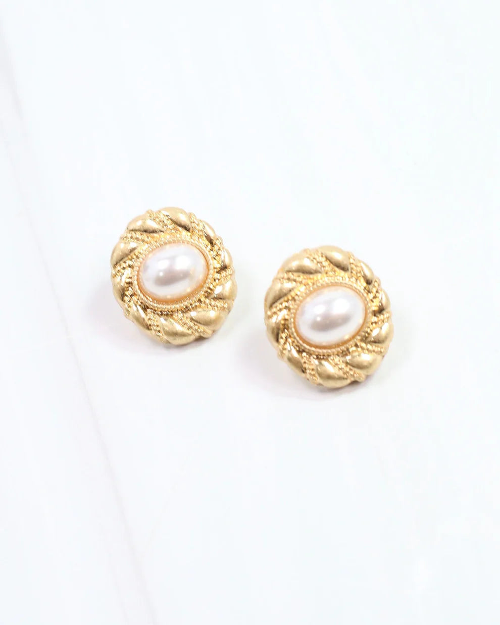 Looking for timeless elegance? The Pressley Pearl stud earrings in worn gold are your perfect pick. Featuring a stunning rope design around an oval pearl, these stunning beauties with worn gold accents add sophistication to any outfit. Classic yet charming—wear them anywhere