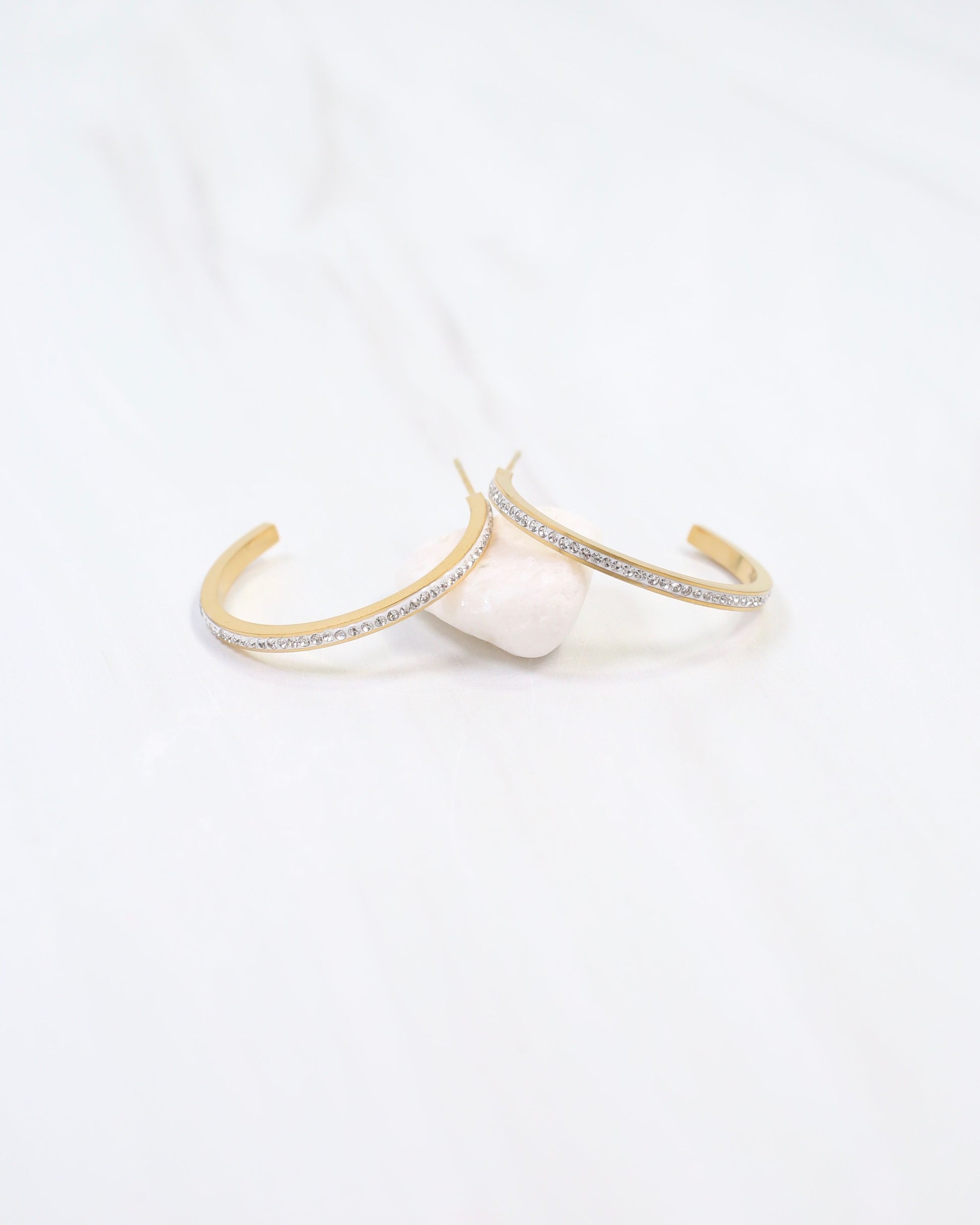 Radiate luxury with the Revere Pave Lined Hoop Earring in gold. These sophisticated stunners feature a stunning pavé design that lines the inner curve, creating a dazzling sparkle from every angle. The perfect balance of understated elegance and eye-catching glamour, they transition effortlessly from boardroom to night out. Timeless, versatile, and absolutely irresistible—a true investment piece for your jewelry collection.