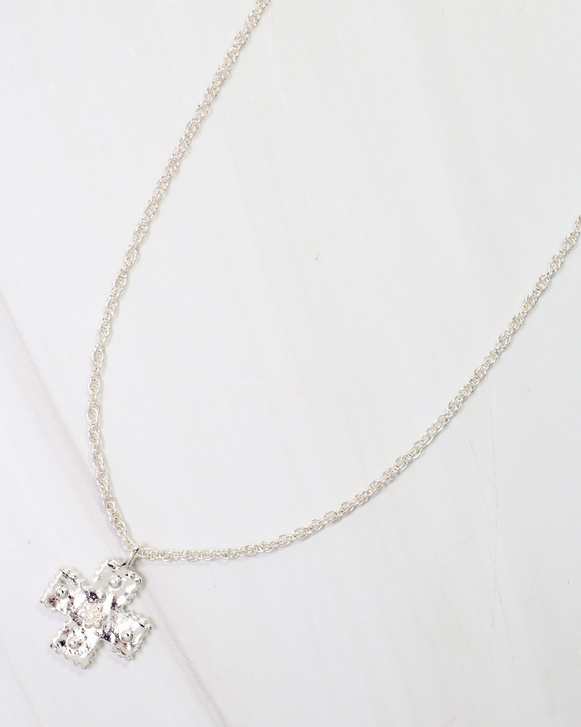 Step up your accessory game with the Rexburg Cross Necklace in Silver. This stylish necklace pairs a sleek silver cross with a modern design, adding a fresh and fun vibe to your outfit. Perfect for layering or wearing alone, it brings a fashionable edge to everyday looks.