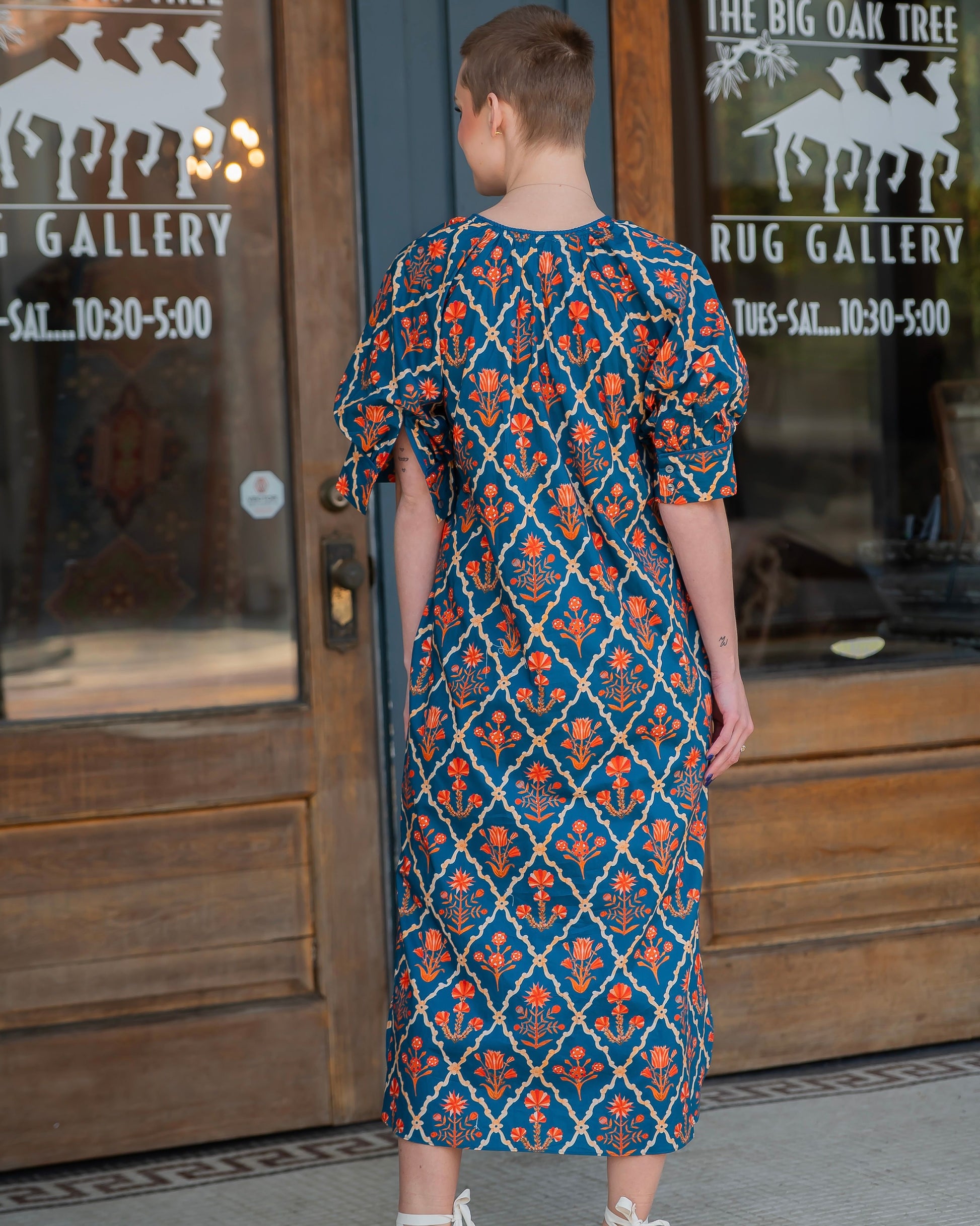 The Solana Floral Cuffed Puff Sleeve Dress combines timeless elegance with thoughtful design. This midi dress features a graceful floral print complemented by refined details: front button accents, delicate piped neckline trim, and structured buttoned cuffs. Functional side pockets and complete lining provide everyday practicality, while the lightweight woven fabric offers breathable comfort without transparency. Perfect for occasions requiring understated sophistication and effortless style.