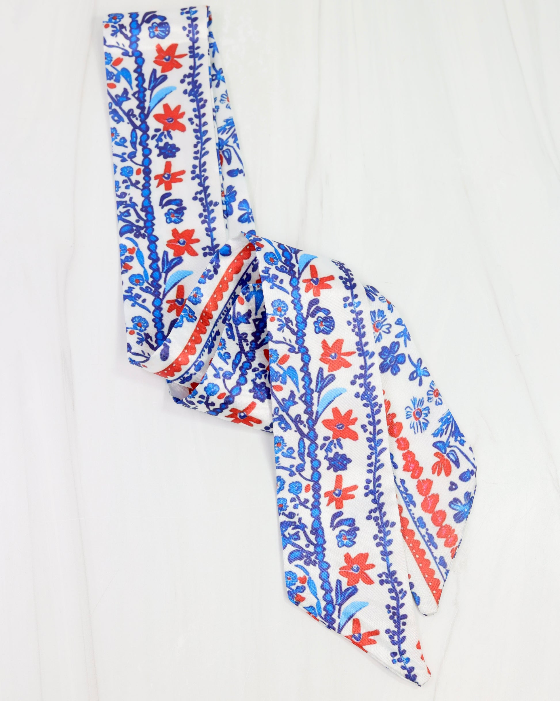 Add a stylish touch to any outfit with the Serafina Scarf in a beautiful Navy and Red Floral print. Its smooth satin-like texture makes it perfect for tying around your neck, wrist, bag, or even your cowgirl boots, adding a playful and fashionable flair wherever you wear it.