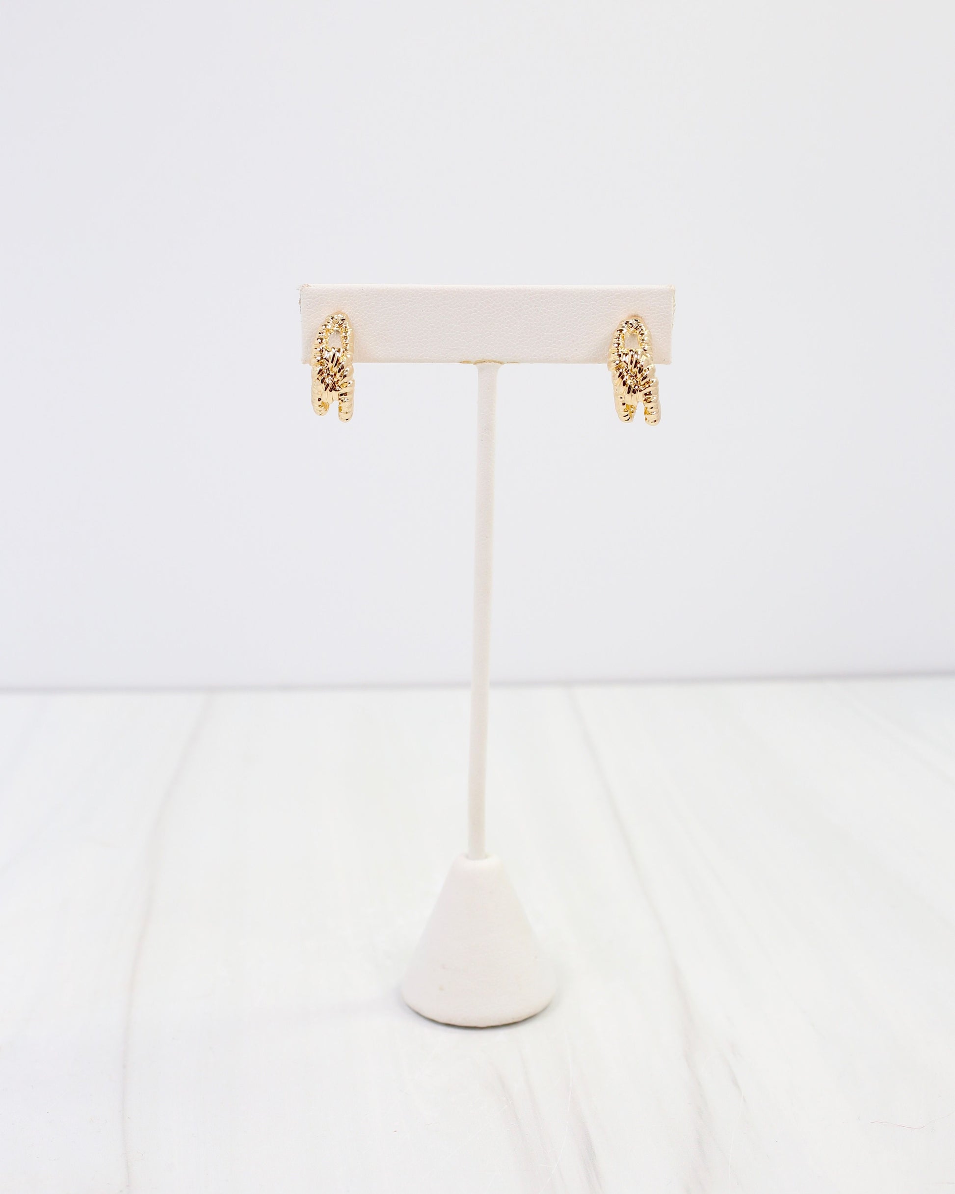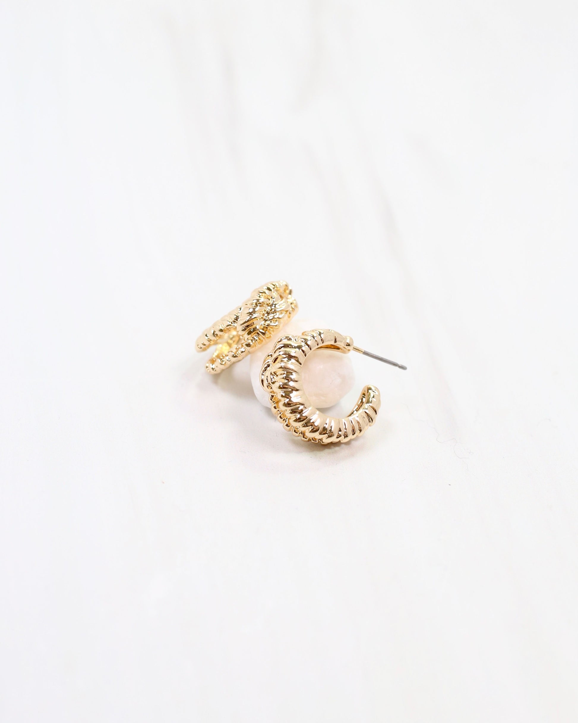 Add a playful twist to your look with the Shawnee Knot Hoop Earring in Gold. These chic huggie hoops feature an elegant knot design that brings a trendy yet timeless vibe. Perfectly sized to hug your earlobes, they add a subtle sparkle and stylish edge, making them a versatile accessory for day or night. Embrace effortless fashion and fun with these must-have earrings.