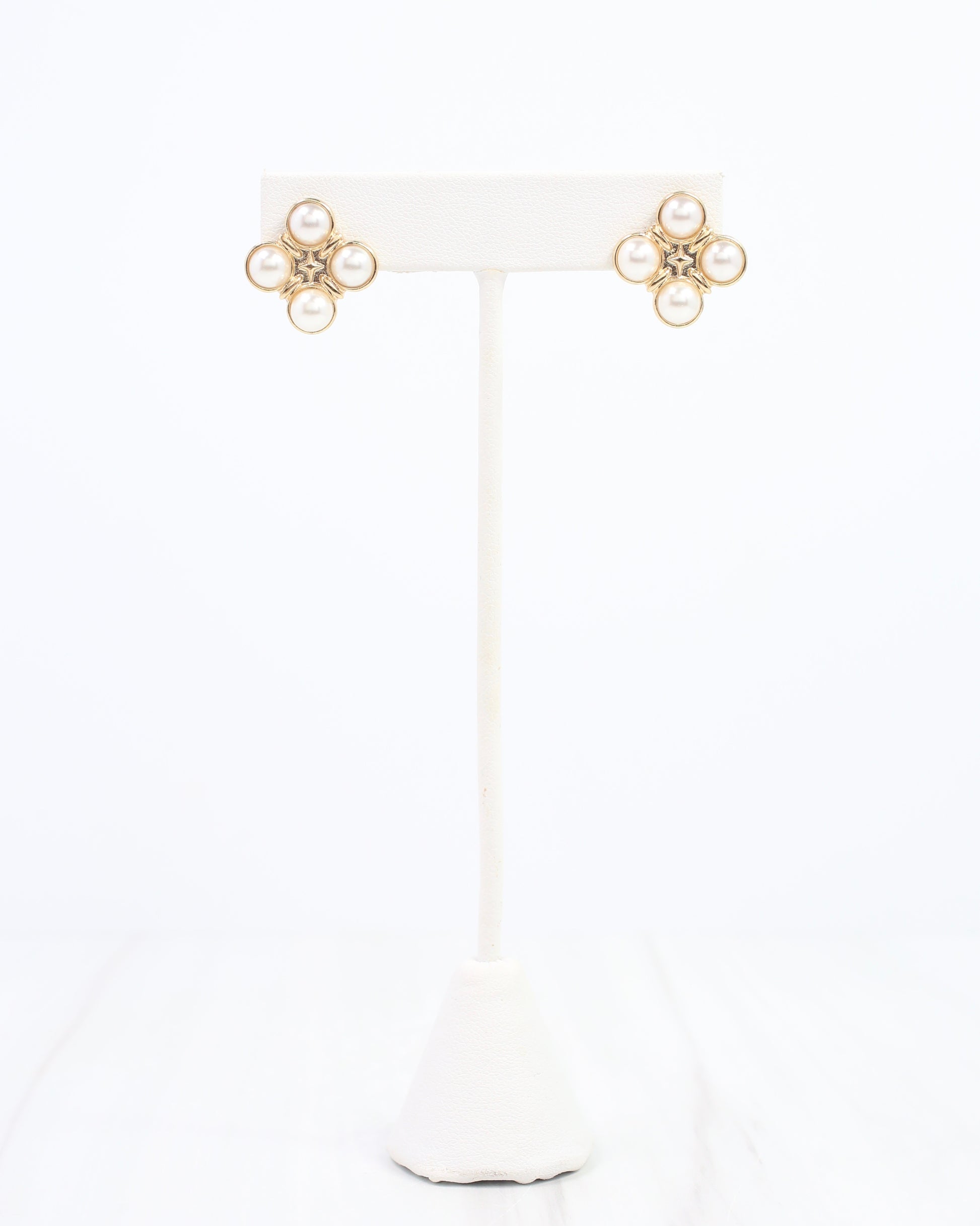 Add a touch of charm with the Shearer Pearl Earring in Cream. Four lustrous pearls dance together in a shiny gold setting, forming a playful clover shape. Perfectly sized to brighten your look with a classy, medium-sized stud that’s both elegant and fun to wear.