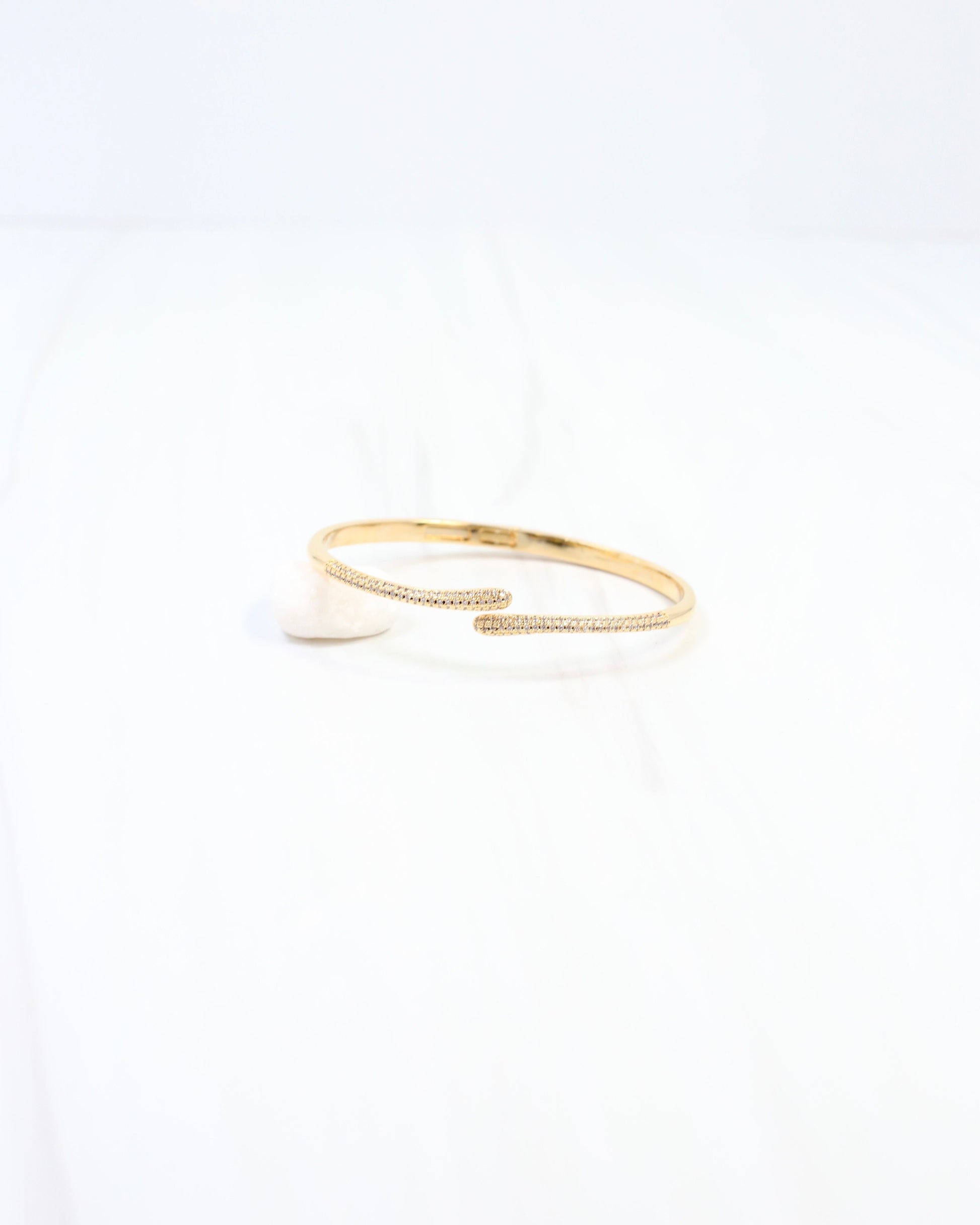 Dazzle in the Shiprock Pave Cuff Bracelet, featuring cubic zirconia stones set in a shimmering pavé pattern on gold. This structured cuff delivers bold glamour with everyday wearability.