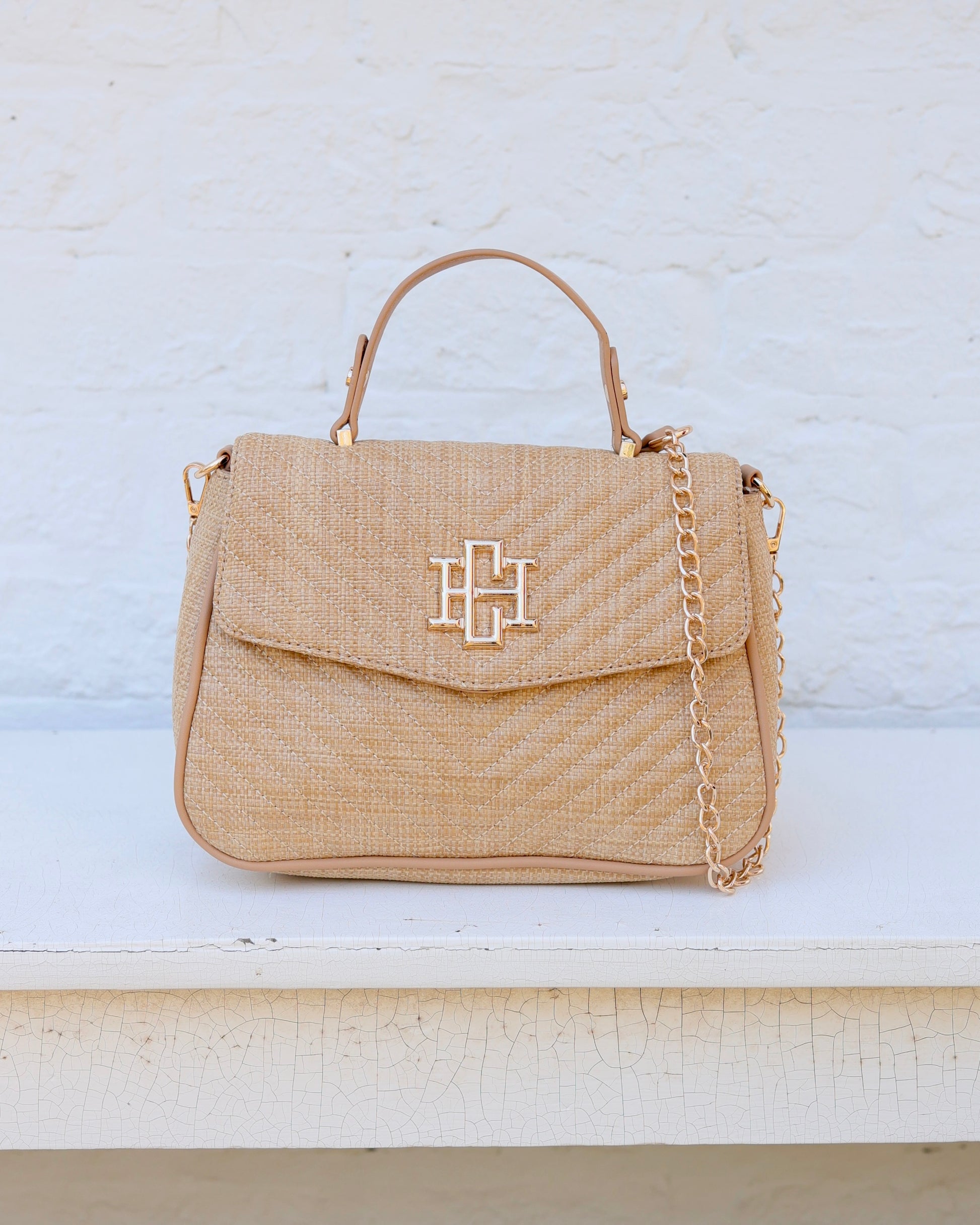 The Sinclair Quilted Crossbody in Natural VQ features beautiful woven fabric with distinctive V quilting. Switch between crossbody and handbag styling with the removable chain strap and top handle. Magnetic closure secures your essentials while the bold logo flap makes an instant statement. Versatile elegance redefined.
