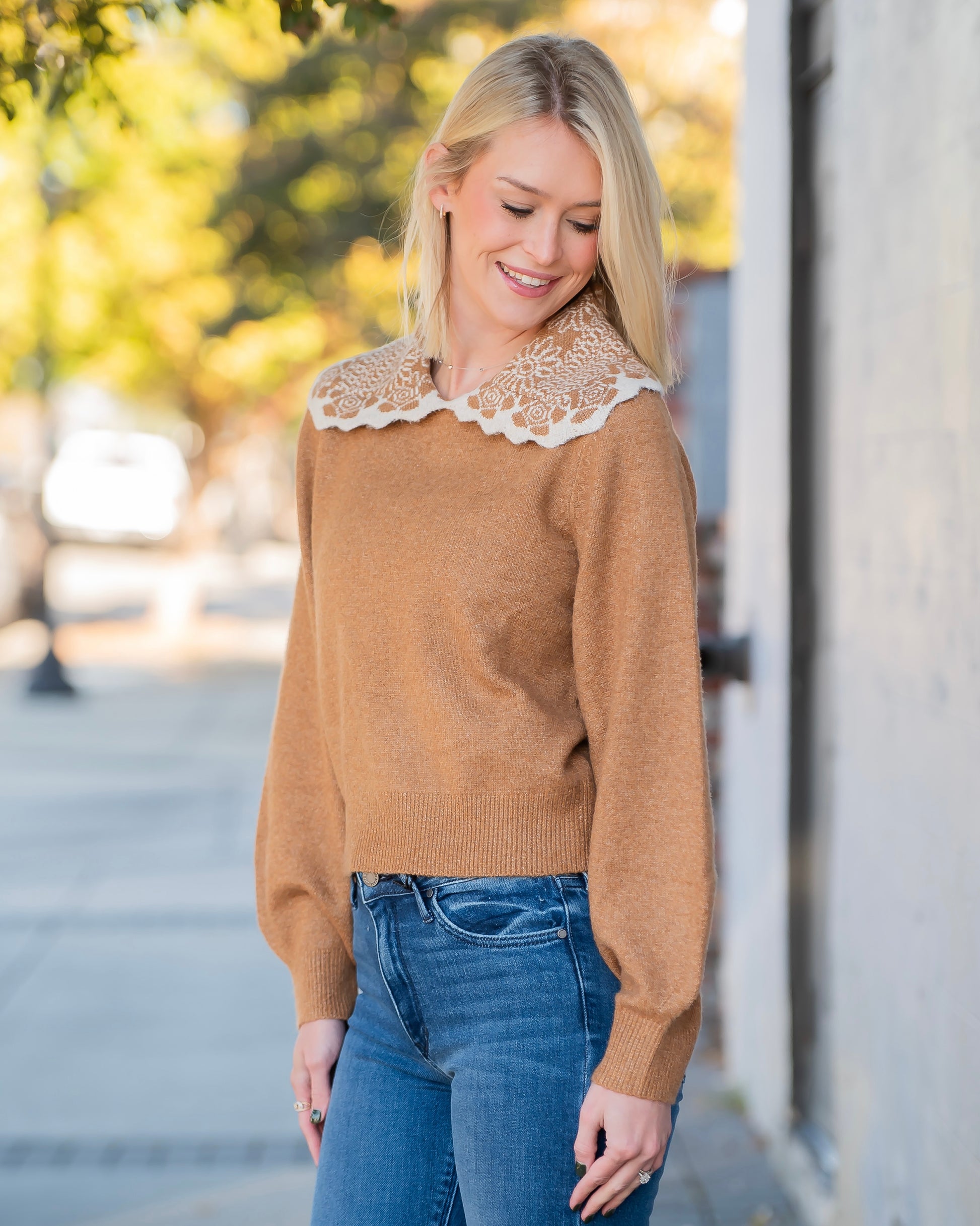 Stay cozy and stylish in the Wellington Collared Sweater, a lightweight pull-over crafted in a rich caramel color. Its playful white accents on the collar add a fresh twist, making it perfect for layering or wearing solo on breezy days. Effortlessly chic and comfortable, this sweater is your new go-to for a fun, fashionable look.