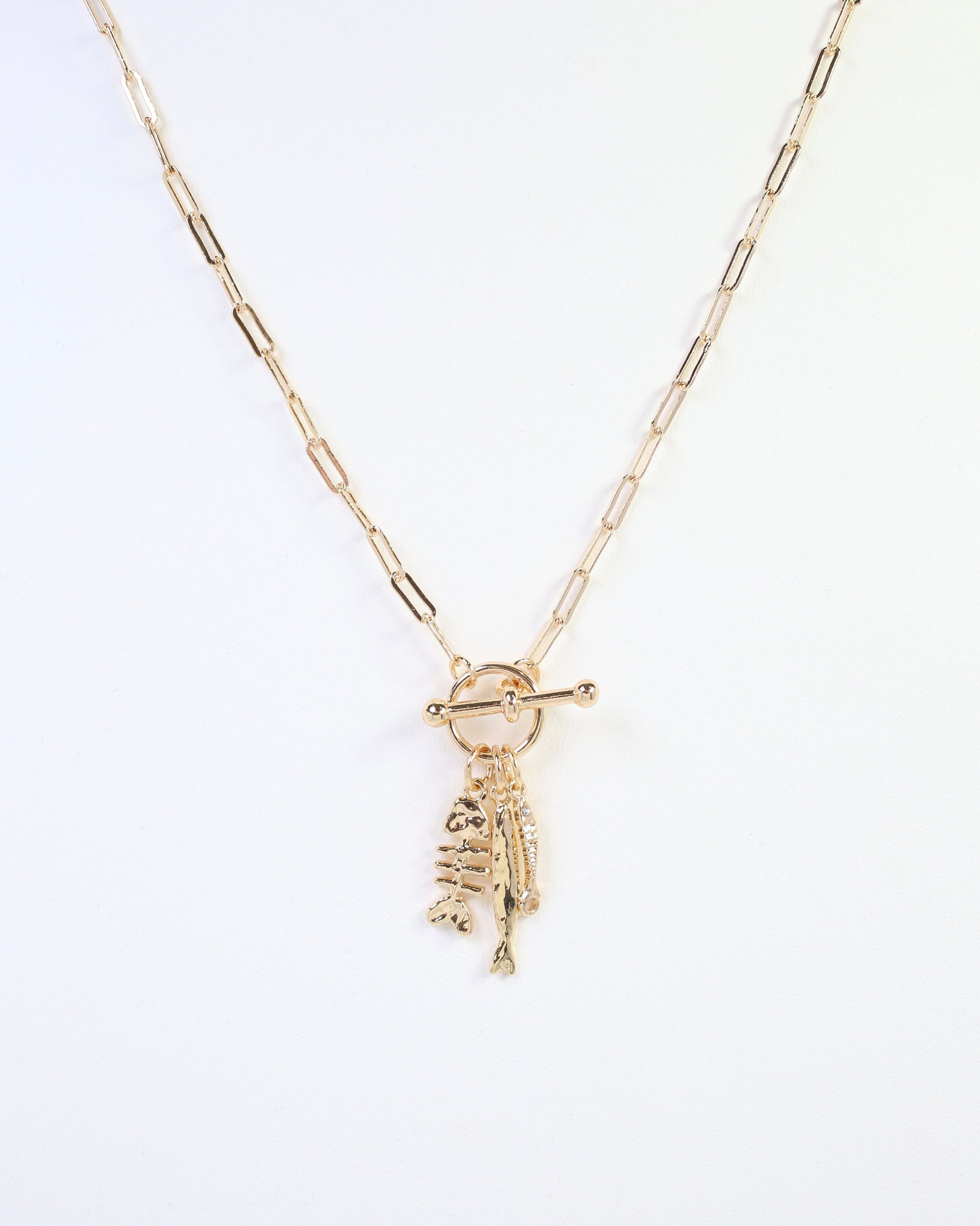 Stony Brook Fish Charm Toggle Necklace Gold