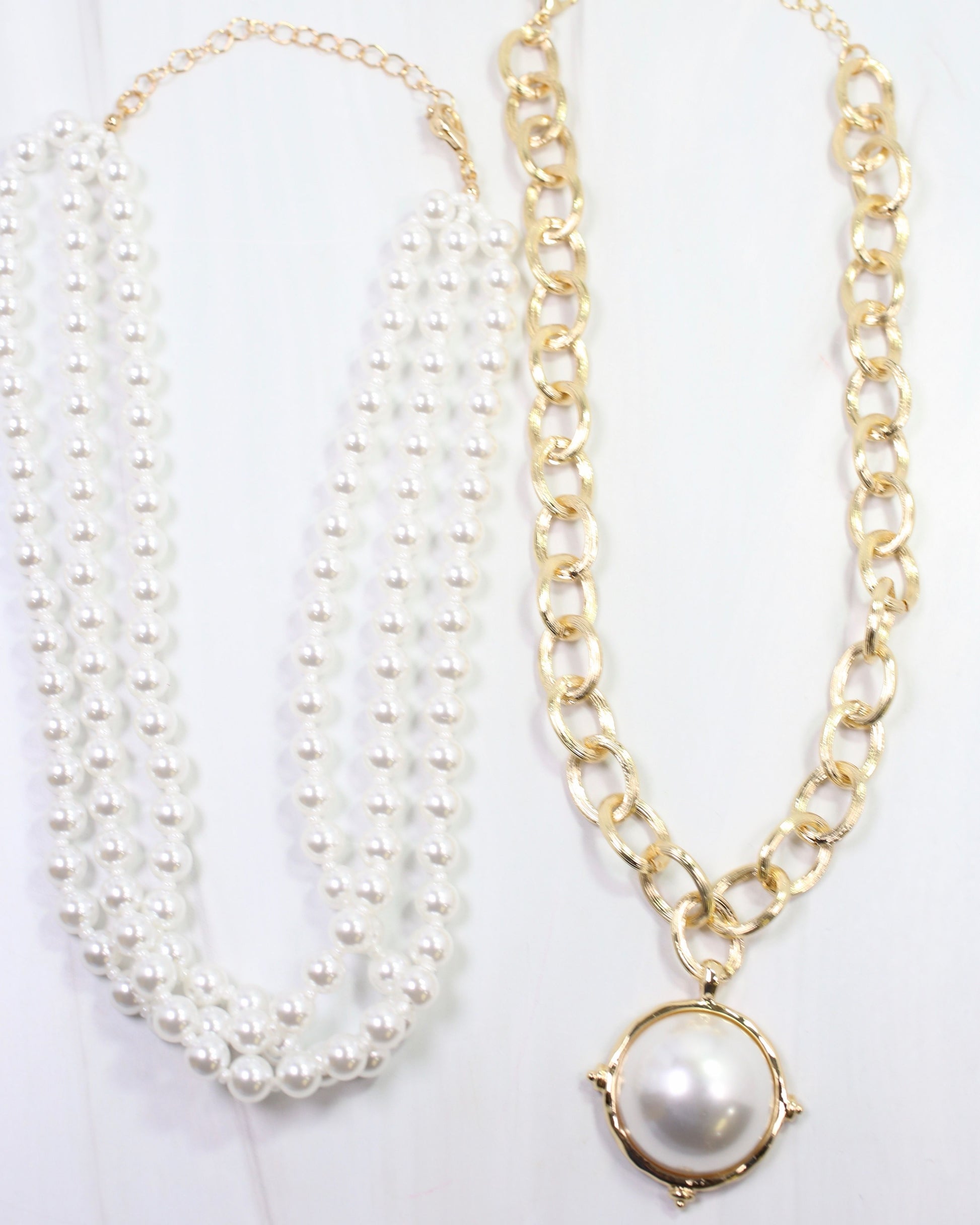 The Sun Valley Pearl Layered Necklace in Gold offers a chic, sophisticated look with its elegant layered design and lustrous pearl accents. Perfect for adding depth and a touch of glamour to any outfit, this necklace effortlessly elevates your everyday style or complements dressier occasions.
