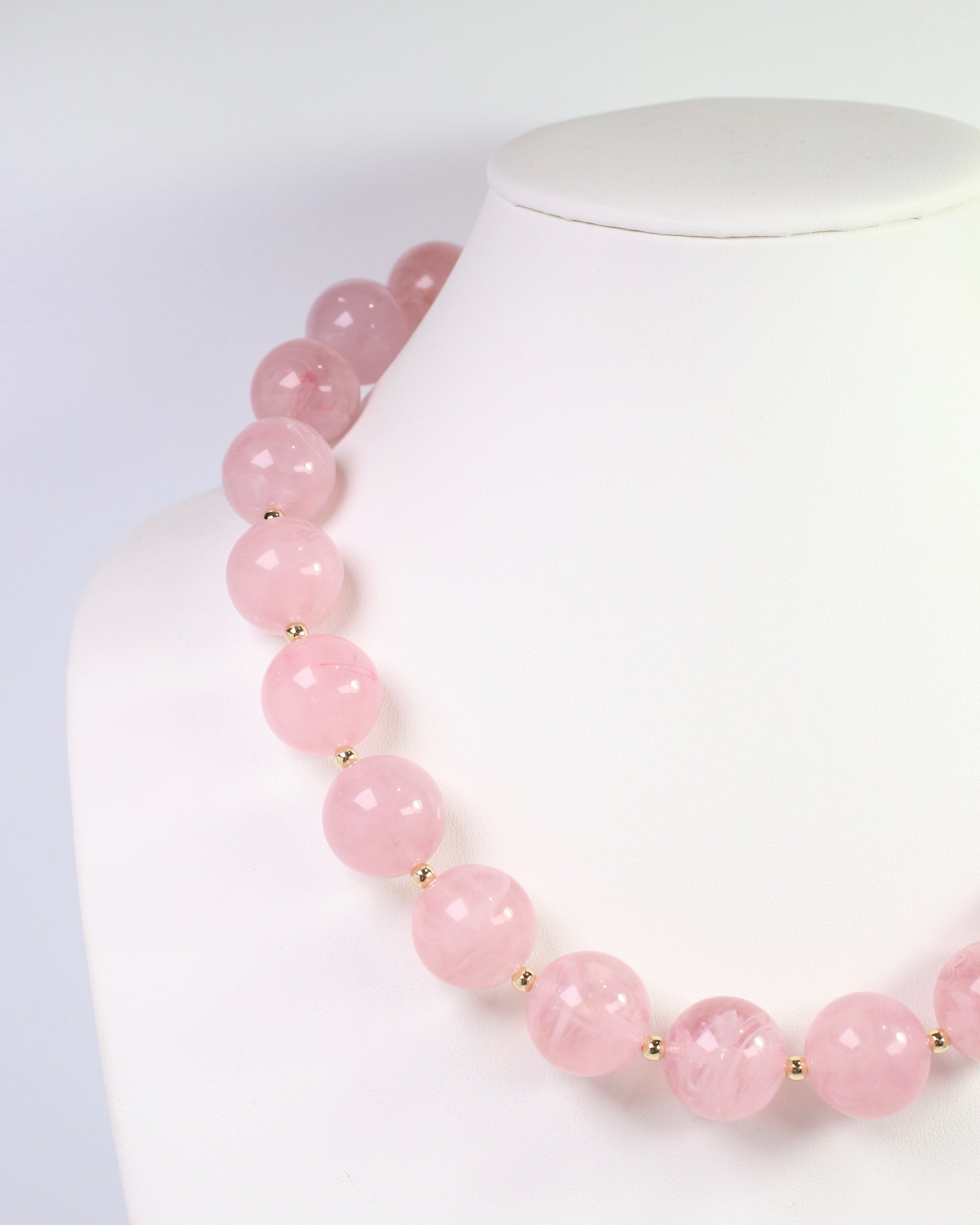 Elevate your jewelry collection with these stunning round marble beads in soft blush pink, accented with gleaming gold bead separators. Each piece captures a sophisticated blend of natural texture and refined elegance, perfect for layering or wearing solo. The swirled marble pattern adds depth and visual interest, while the gold accents bring a touch of luxury to any ensemble.