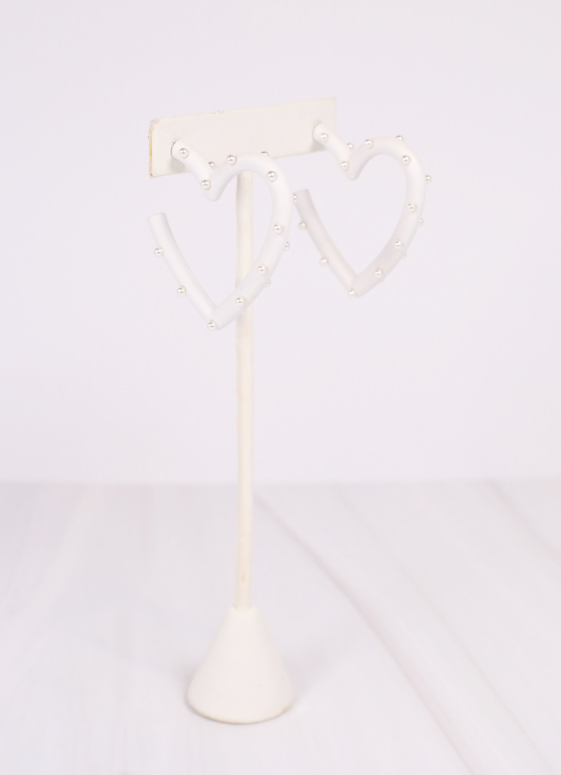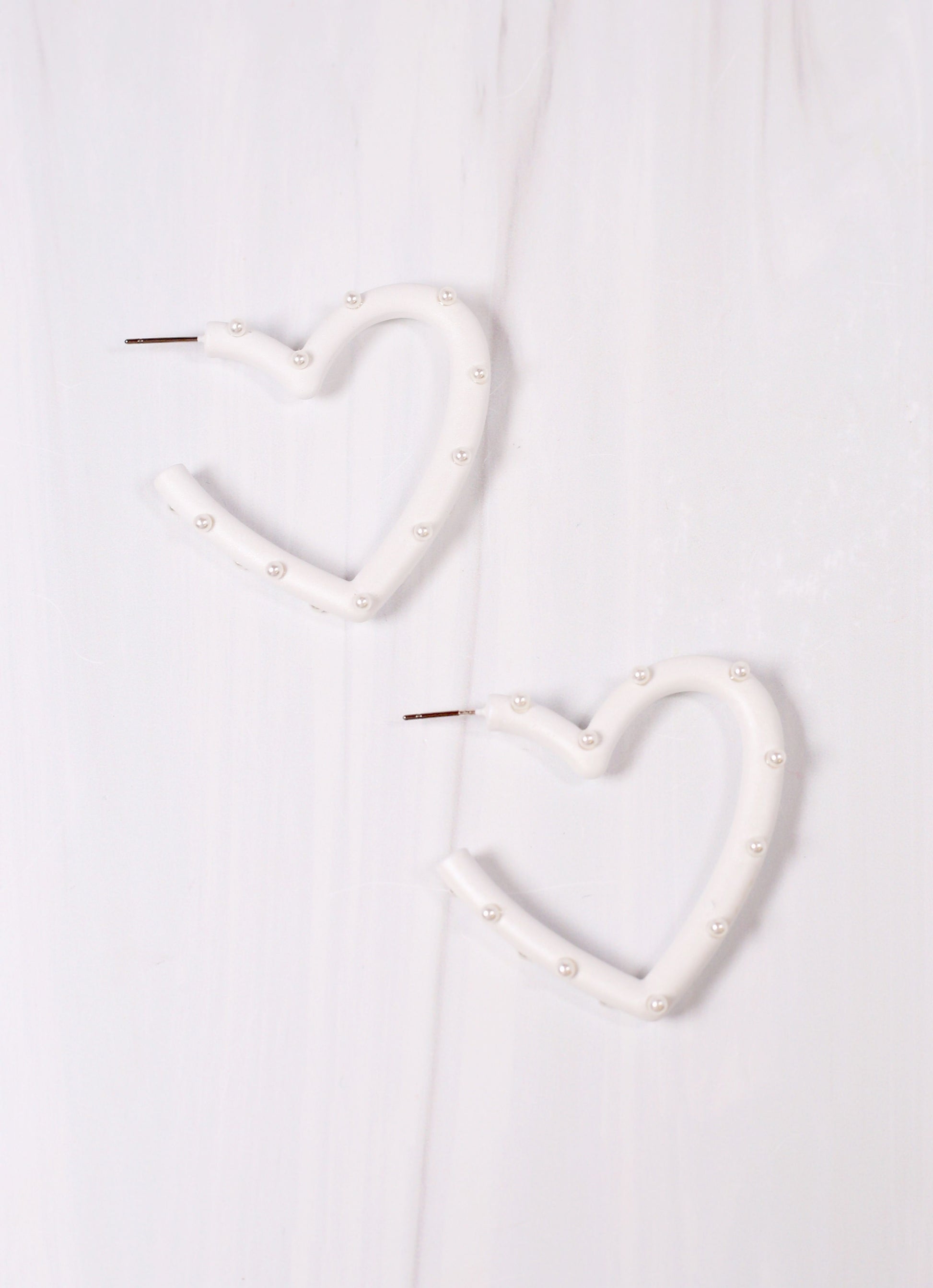 This coated metal heart earring is adorable! It is studded with pearl accents on a post back.
