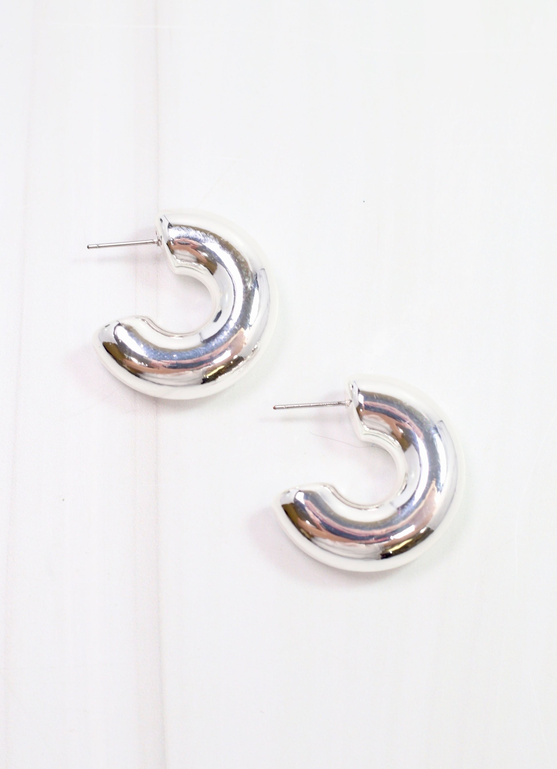 This hollow hoop earring has a shiny metal finish and is sure to pair well with any outfit for any occasion.