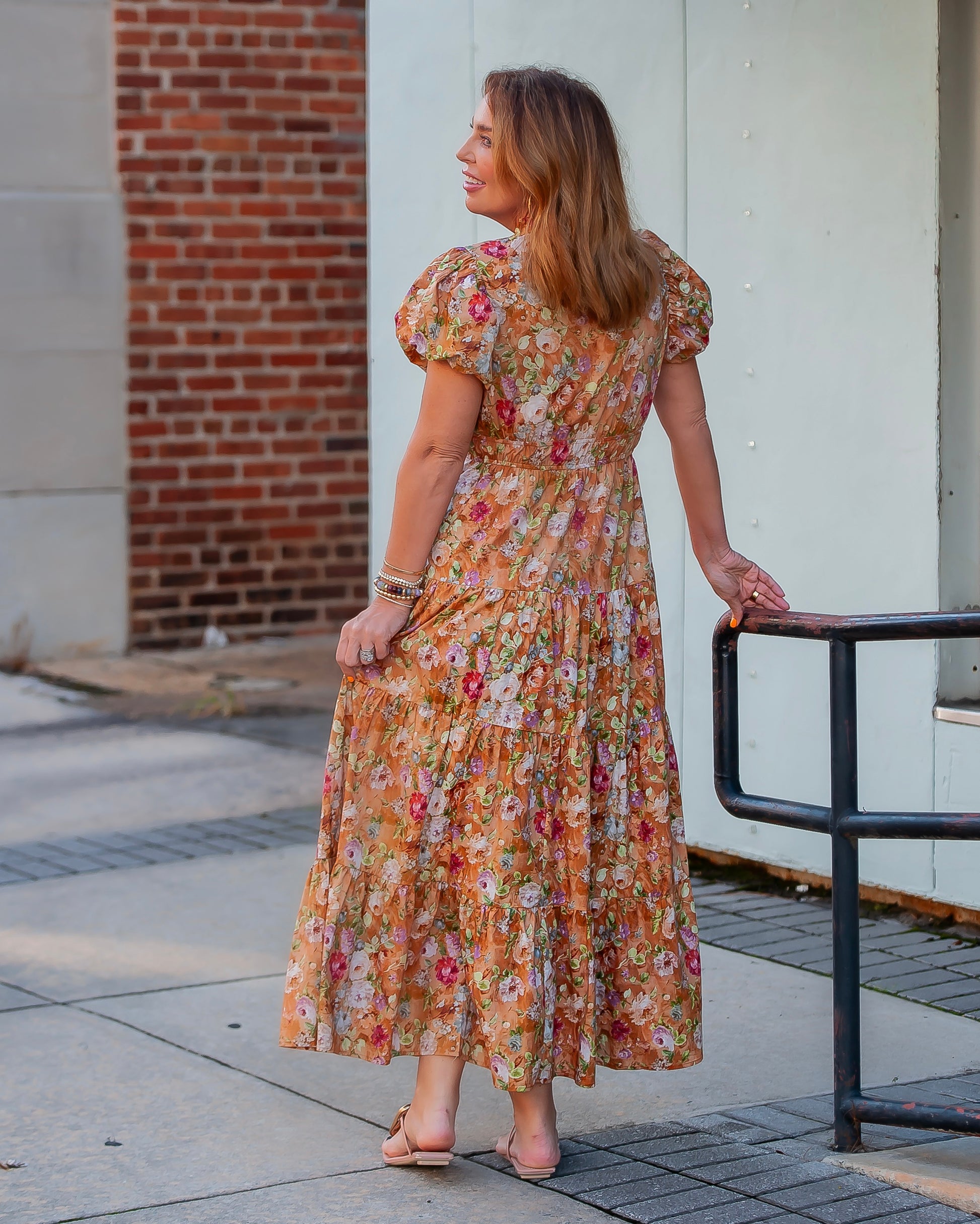 The Victoria Floral Print Midi Dress features a captivating terra cotta floral pattern that elevates any wardrobe. Designed with short bubble puff sleeves and a flattering double elasticated waist, this tiered midi dress offers both style and comfort. Crafted from lightweight, woven fabric with a lined, non-sheer finish, it ensures ease of wear and a graceful silhouette perfect for any fashionable occasion.