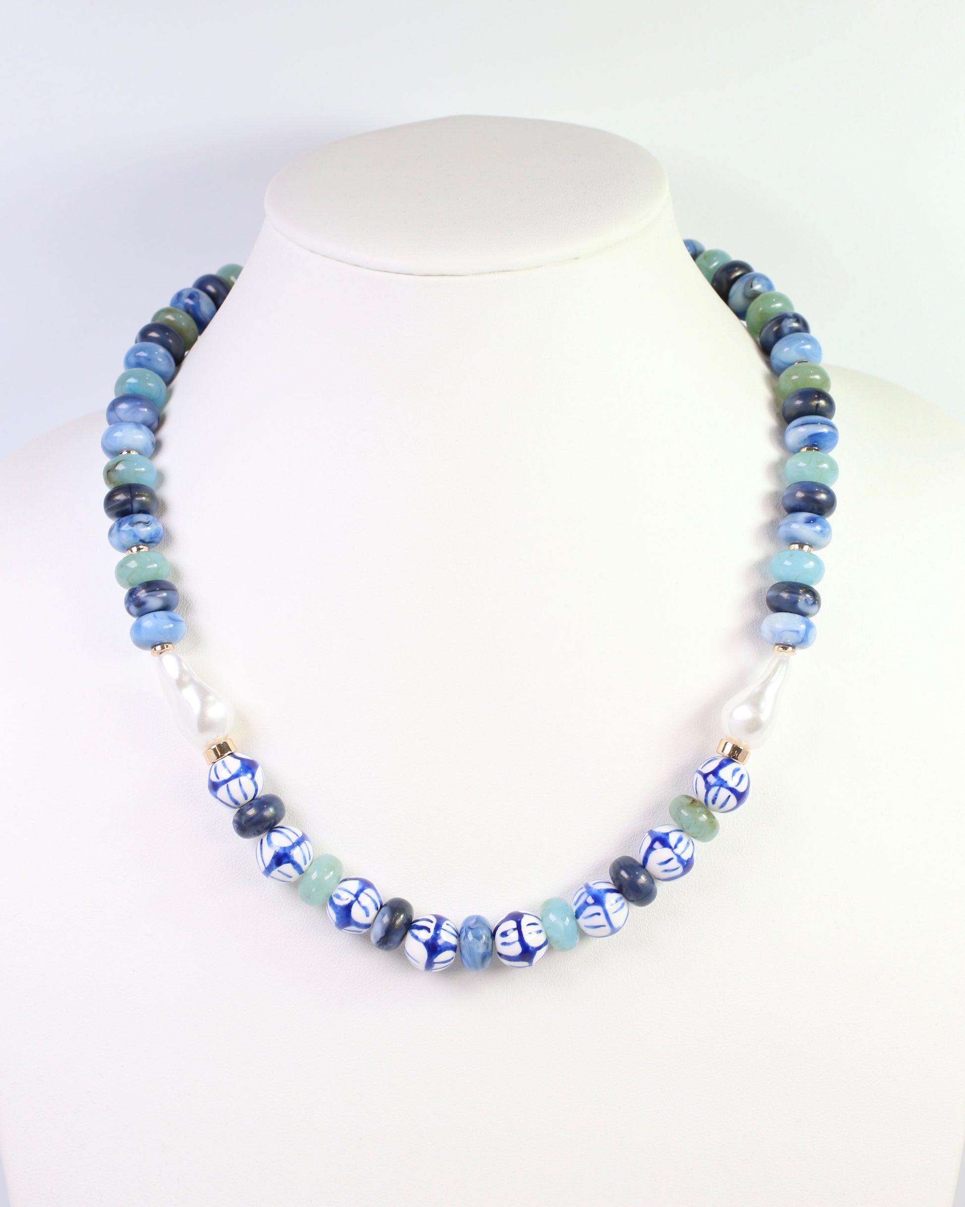 Warrensburg Ceramic Beaded Necklace Blue Multi