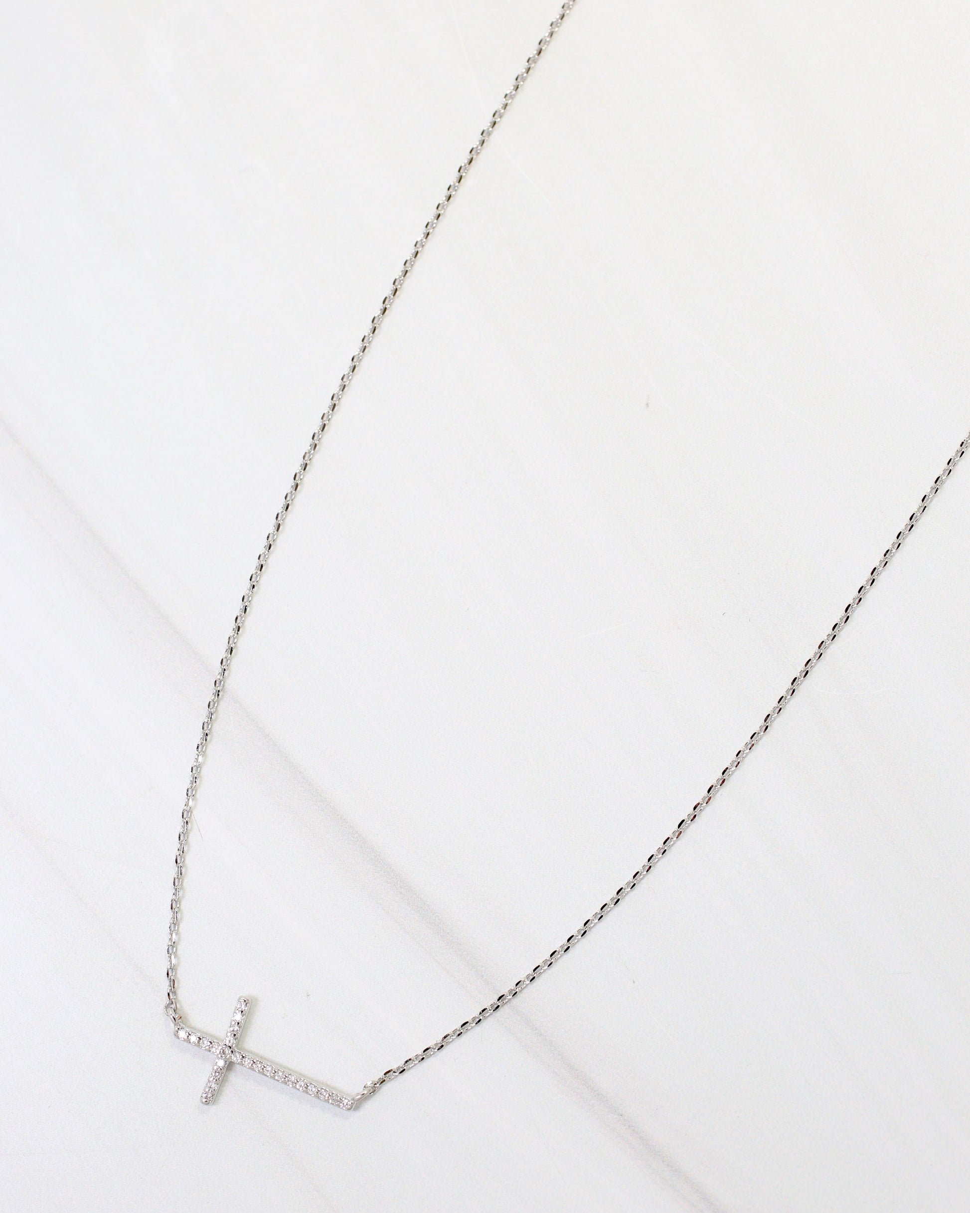 West Point CZ Side Cross Necklace Silver