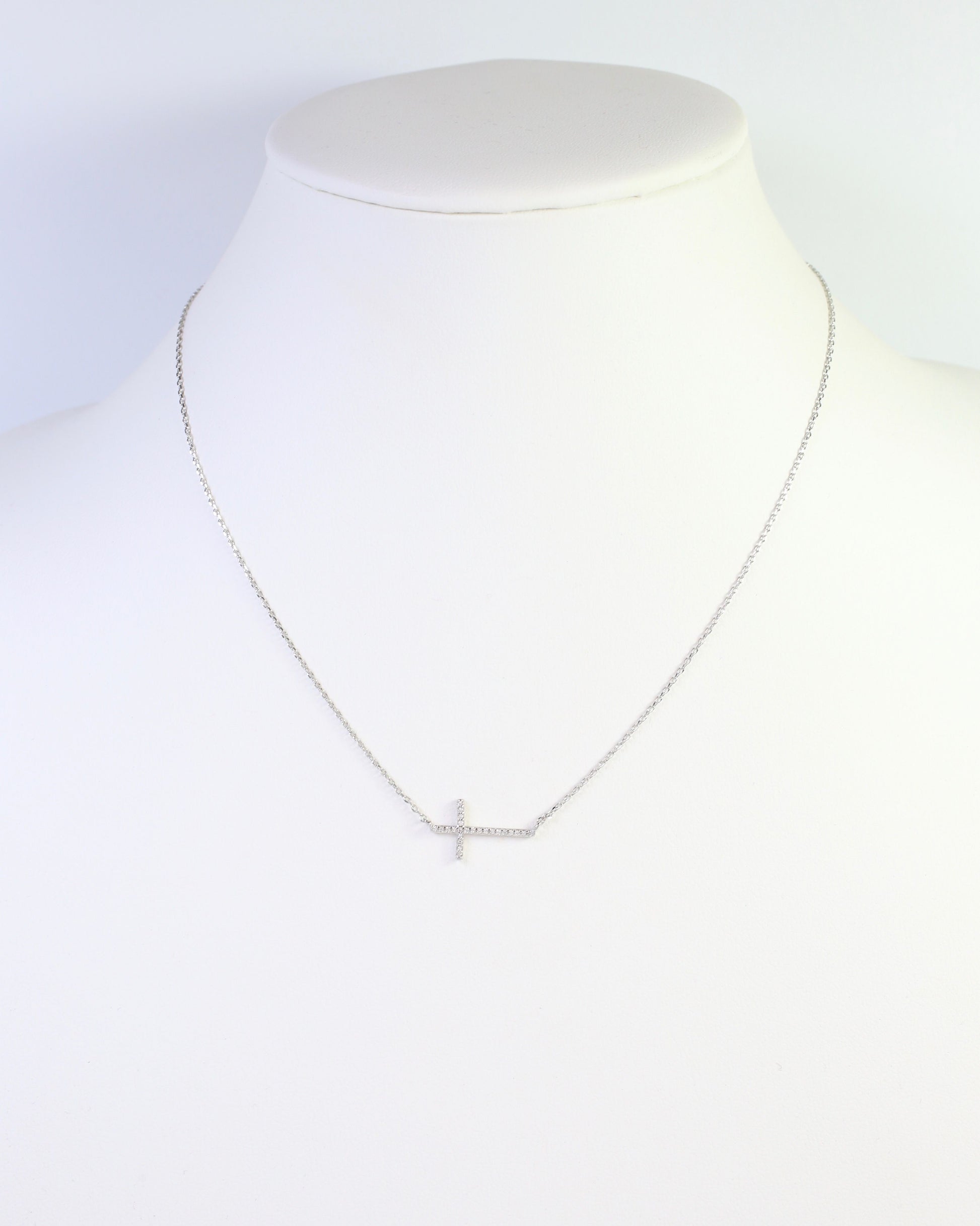 Embrace modern minimalism with the West Point CZ Side Cross Necklace in sleek silver. This contemporary pendant features a gracefully angled cross design adorned with sparkling cubic zirconia accents that catch the light with every movement. The off-center placement adds an edgy, fashion-forward touch to a timeless symbol. Perfect for layering or wearing as a standalone statement, its cool silver finish complements any complexion and pairs beautifully with both casual and elevated looks. An effortlessly chic accessory that brings understated sophistication to your everyday style.