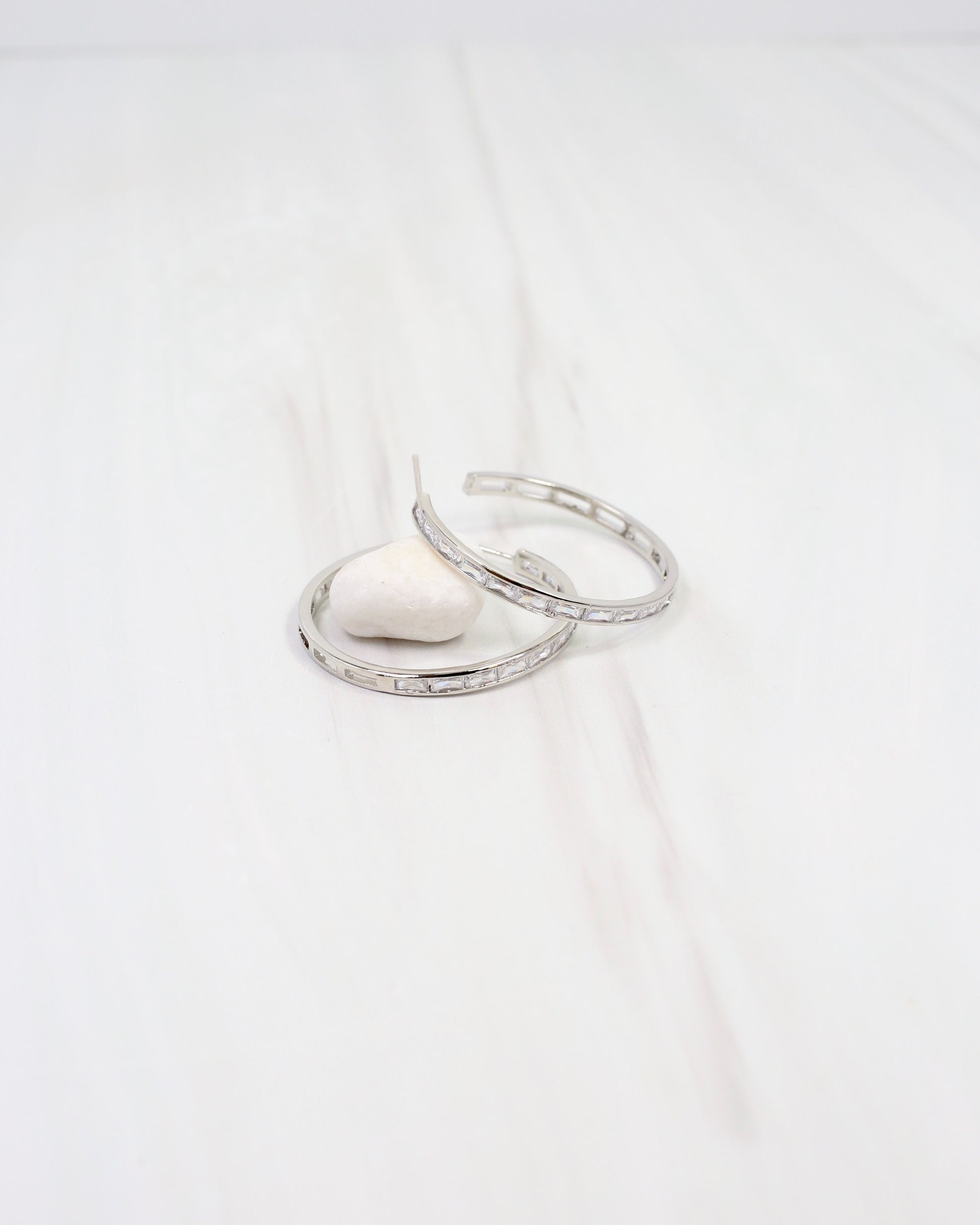 Sparkling silver hoops with cubic zirconia accents that deliver glamorous shine. The Westfield design features a lined CZ detail that catches light beautifully, making these hoops perfect for elevating your everyday style or standing out at special events. Versatile luxury at its finest.