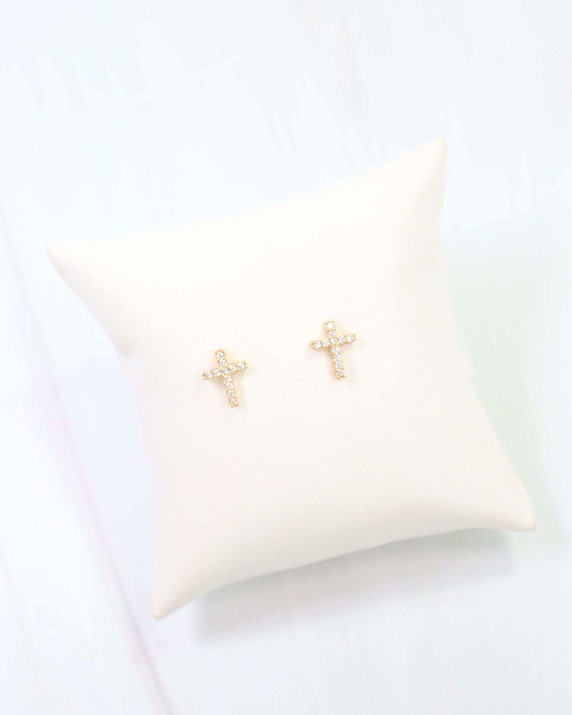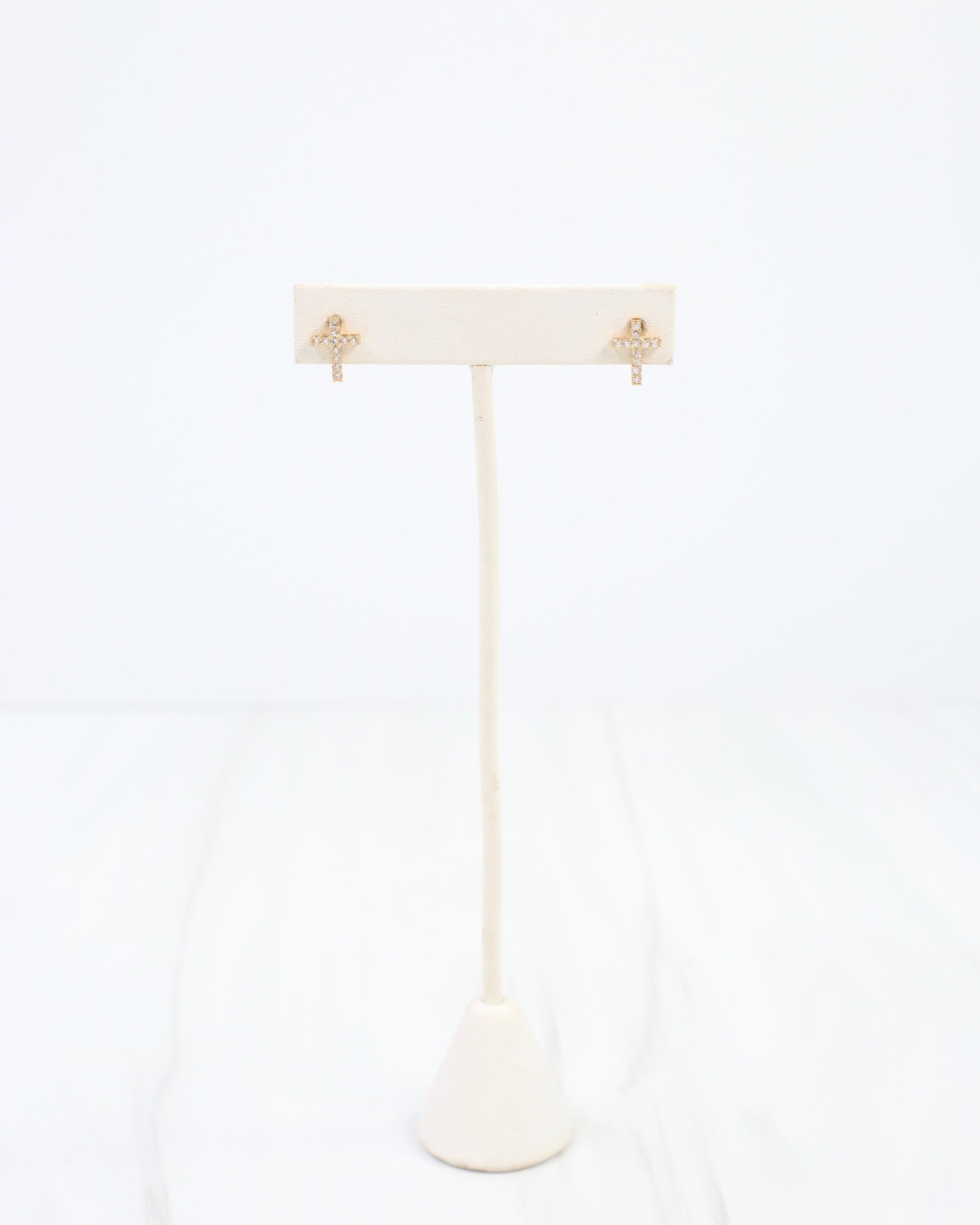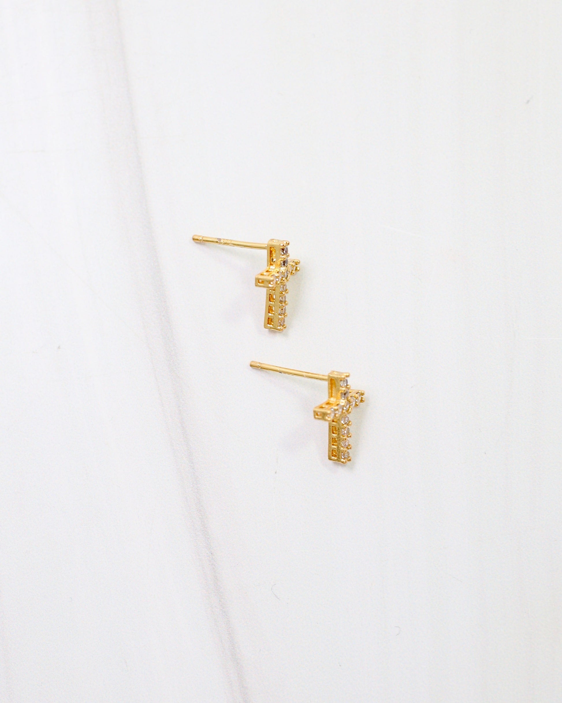 Make a meaningful statement with the Wickham CZ Cross Earrings in gold. These striking studs feature sparkling cubic zirconia accents that catch the light beautifully, while the iconic cross design adds spiritual significance and style. Versatile enough for daily wear yet distinctive enough to elevate any ensemble with understated glamour.